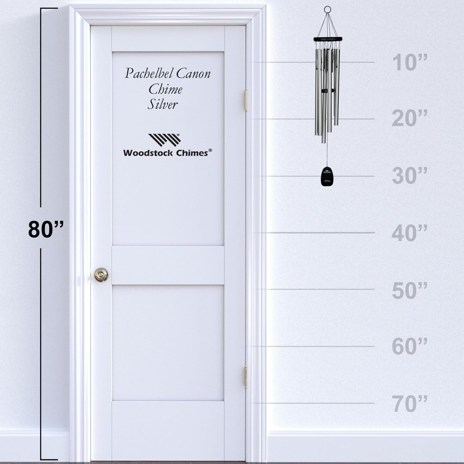 Woodstock Wind Chimes Pachelbel's Canon in D, Silver Aluminum Tubes, Medium 32 - Inch, Deep Toned Windchime for Outdoor Decor for Garden, Patio, Porch