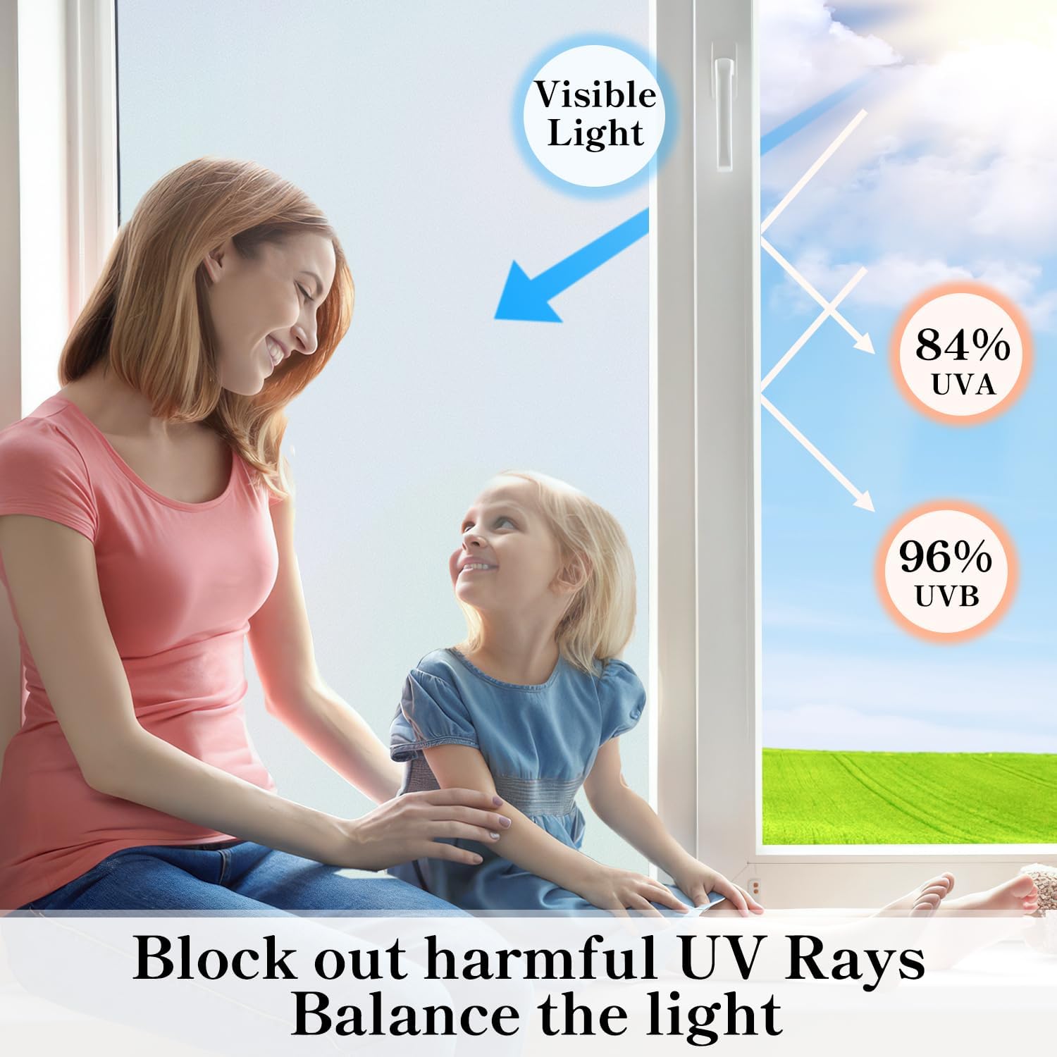 - 【Privacy Protection】This privacy window film can Instantly change your see-through glass into a white frosted glass panels.Provides Privacy and Allows the Lights in. Privacy Level :★★★★★ Top Private Window Films (Outstanding Privacy Protection Even Works For Bathrooms). Widely Suitable For Any Places: Kitchen, Bedroom, Bathroom, Living Room, Dining Room, Office, Hotels, Classroom, Lobby, etc.