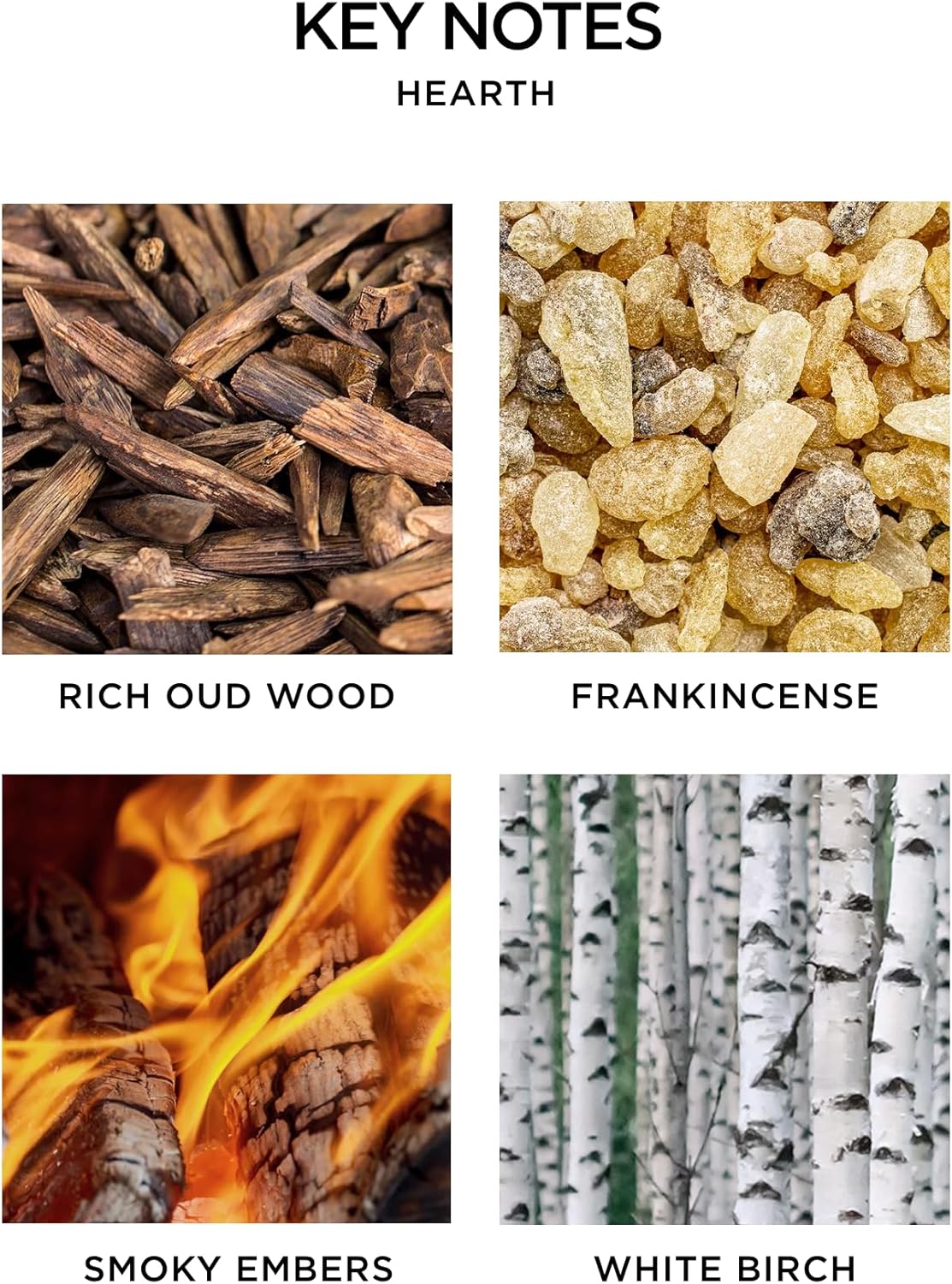 - EARTHY & WOODY - Essence of rich oud wood blends with frankincense and hints of smoky embers in this sophisticated fragrance, recreating the aroma of a warming wintertime fire in the hearth.
