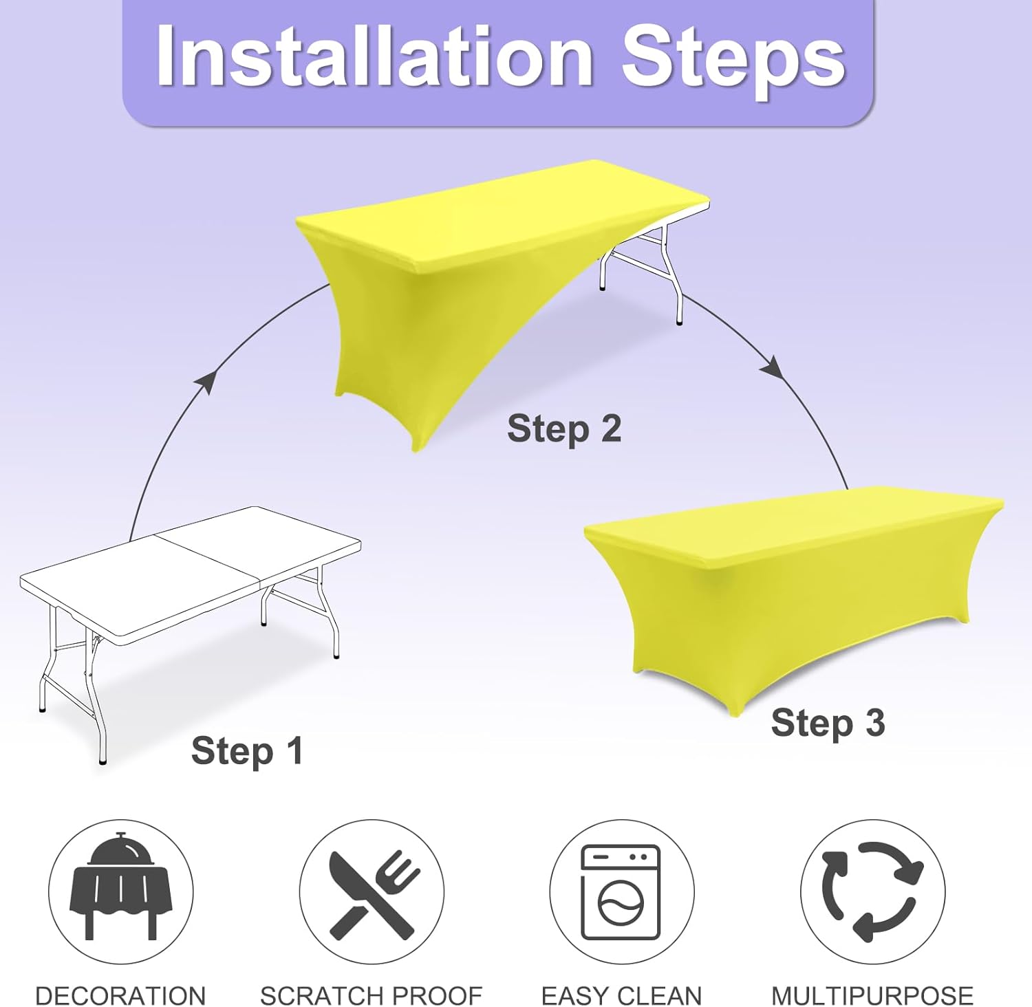 ABCCANOPY 6 FT Yellow Spandex Table Cover Stretch Fitted Wrinkle Resistant Tablecloth Reuse for Rectangular Folding Table Patry Event Wedding Banquet