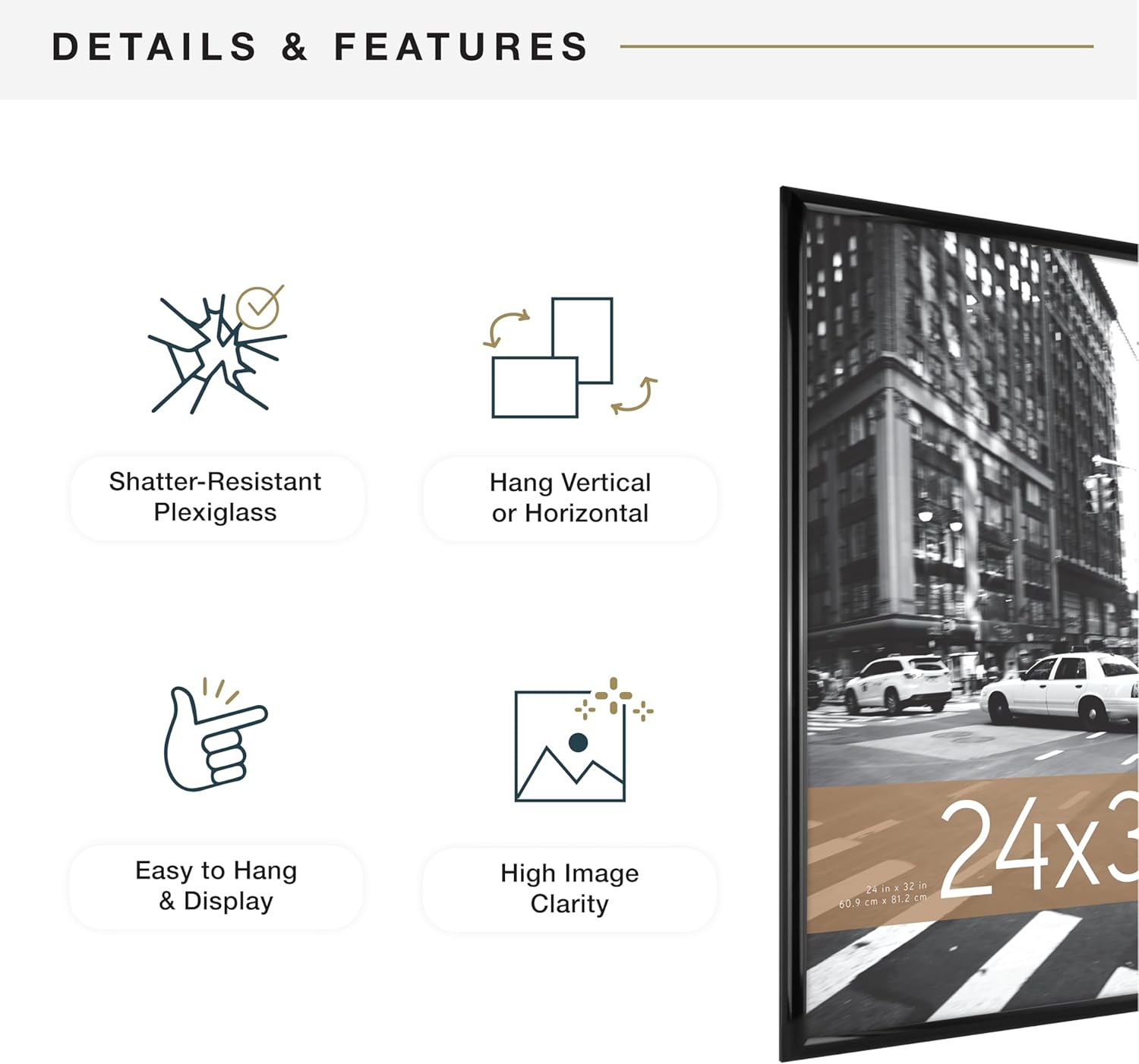 MCS Trendsetter 24x32 Poster Frame Black High-Gloss, Vertical & Horizontal Wall Hanging Large Picture Frame for Photos, Posters & Art Prints (1-Pack)