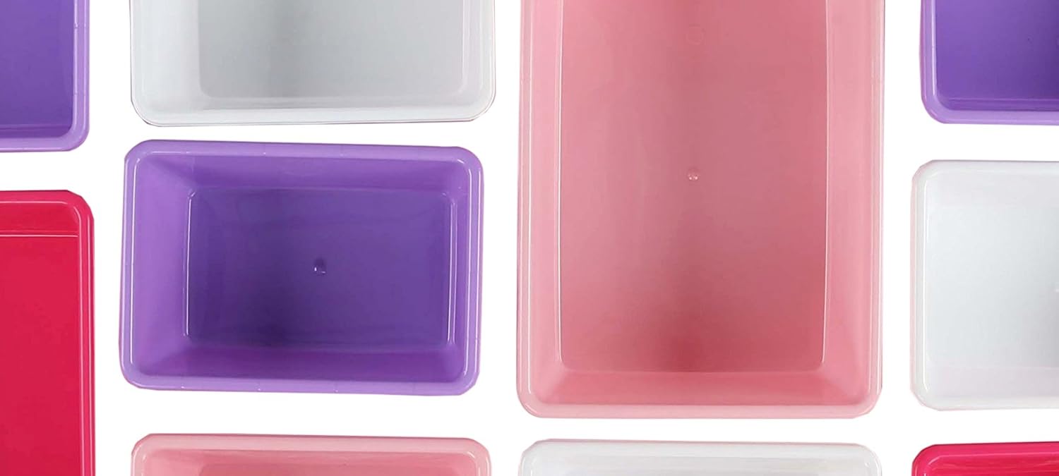 Humble Crew Kids Toy Storage Organizer with 12 Plastic Bins, White/Pink/Purple – Removable Bins for Playroom, Bedroom, Toddler Furniture for Boys and Girls Ages