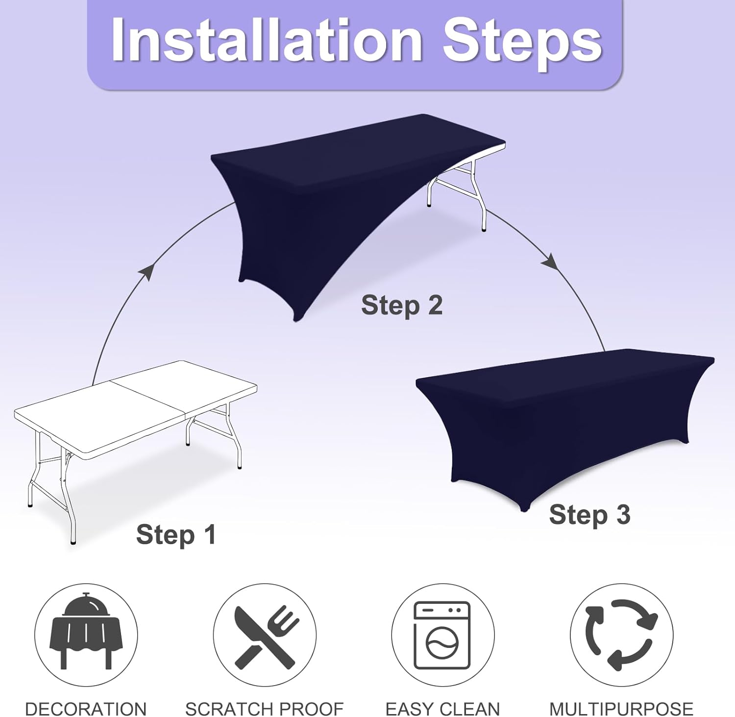 ABCCANOPY 6 FT Navy Blue Spandex Table Cover Stretch Fitted Wrinkle Resistant Tablecloth Reuse for Rectangular Folding Table Patry Event Wedding Banquet Protector