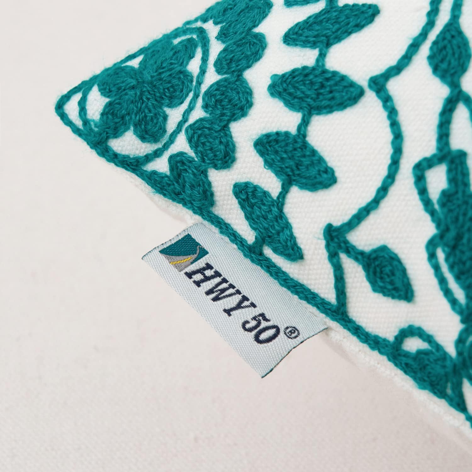 HWY 50 Teal Decorative Throw Pillow Covers 18x18 Inch (1 Piece), Embroidered Cotton Farmhouse Cushion Cover Pillow Case for Sofa Couch Living Room Bed, Little Sunflower