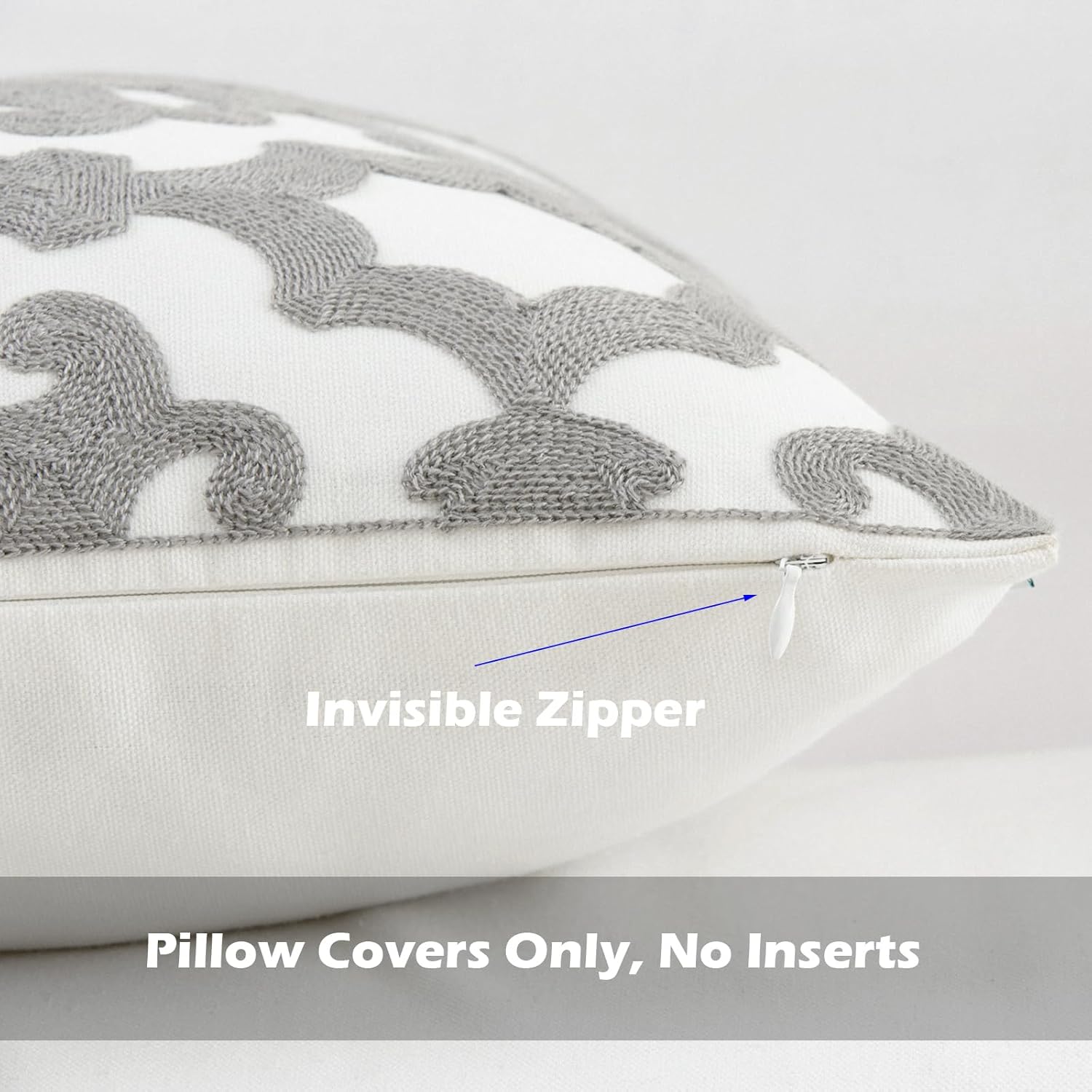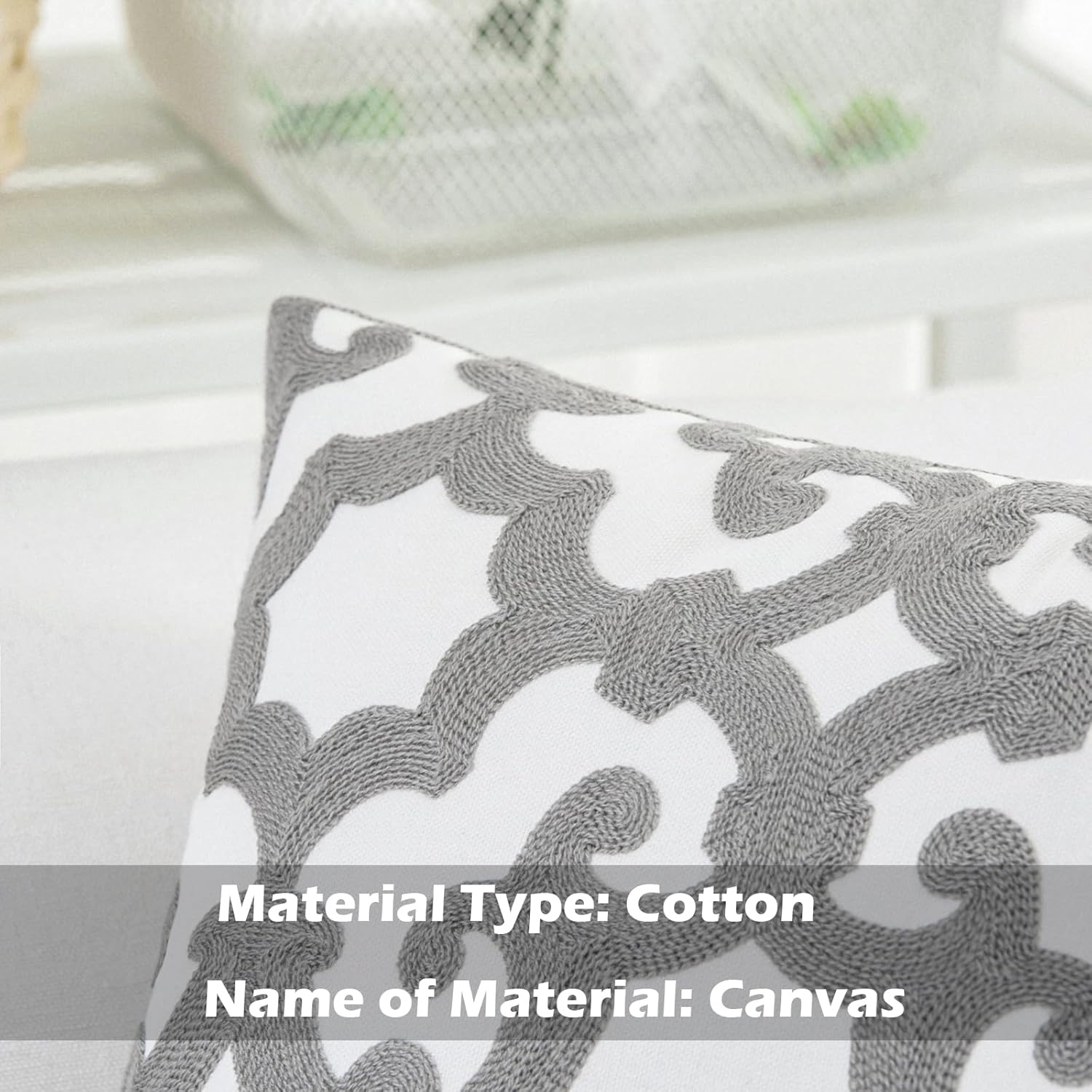 - Size & Material: This 18 x 18 inch (18 by 18) square throw pillow cover is made of 100% thick cotton canvas for durability. The crisp white fabric is soft yet sturdy, featuring beautiful single-sided embroidery for an elegant touch
