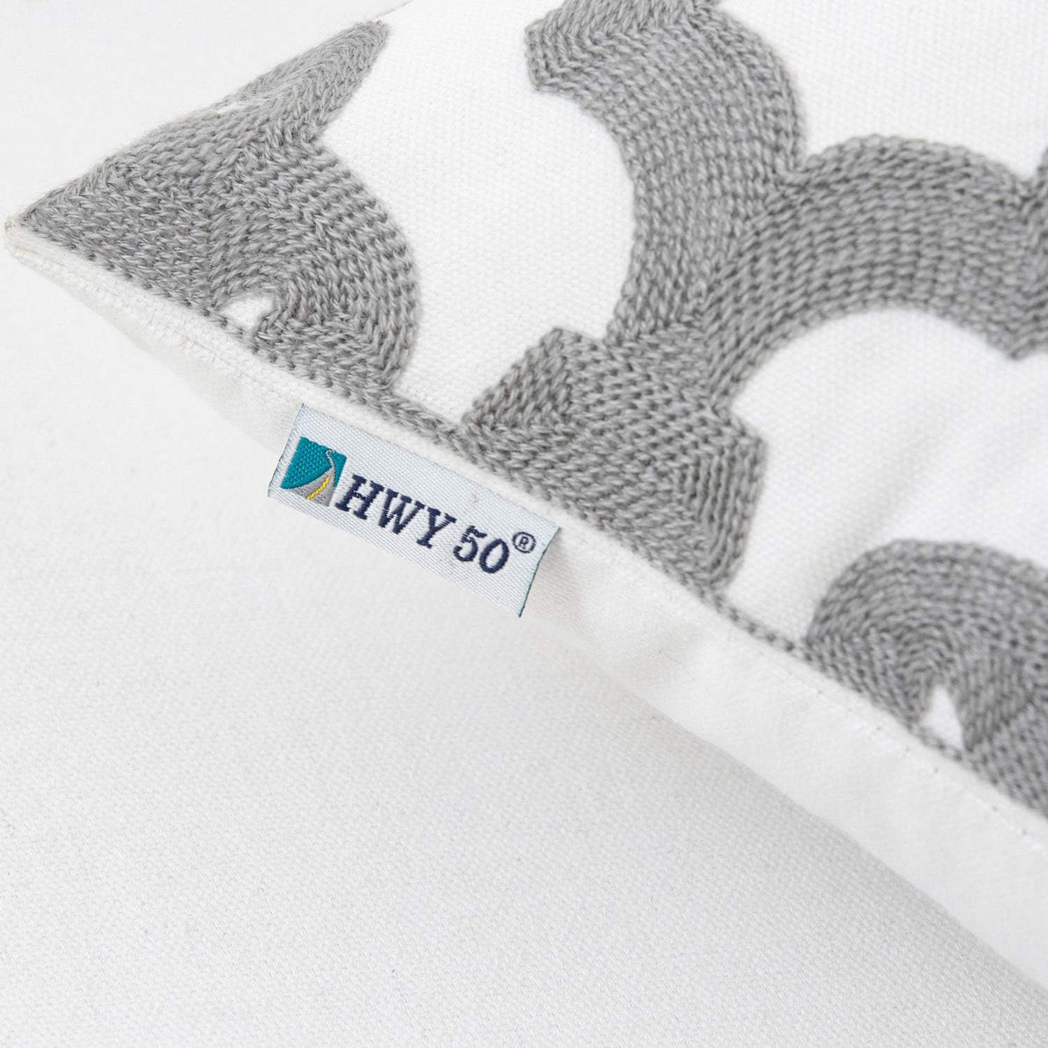 HWY 50 Grey Gray Decorative Throw Pillow Covers 18x18 Inch (1 Piece), Embroidered Cotton Farmhouse Cushion Cover Pillow Case for Sofa Couch Living Room Bed, Geometric