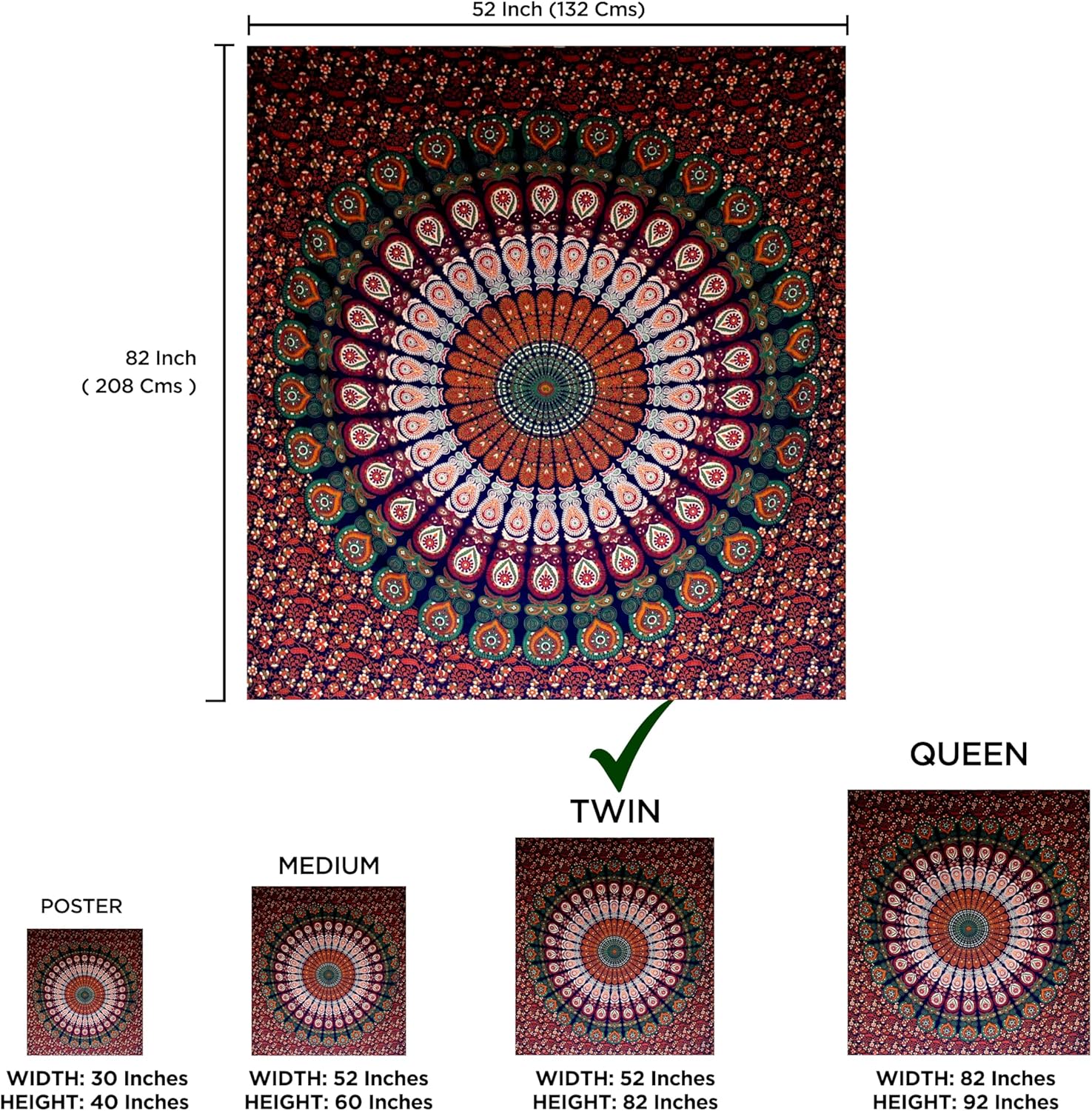 - MATERIAL & SIZE : Mandala boho Tapestry is made of 100% cotton fabric, made and printed in India, With delicate hand sewing, easy to hang, the edges are neat and finished and used for both indoor and outdoor purpose, size TWIN 140 X 210 CMS