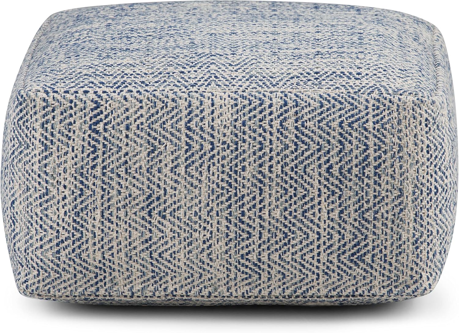 SIMPLIHOME Nate 20-inch Wide Square Pouf in Patterned Denim Mélange, Handwoven Boho-Style Cotton Ottoman, Footrest, or Extra Seating for Living Room, Assembled