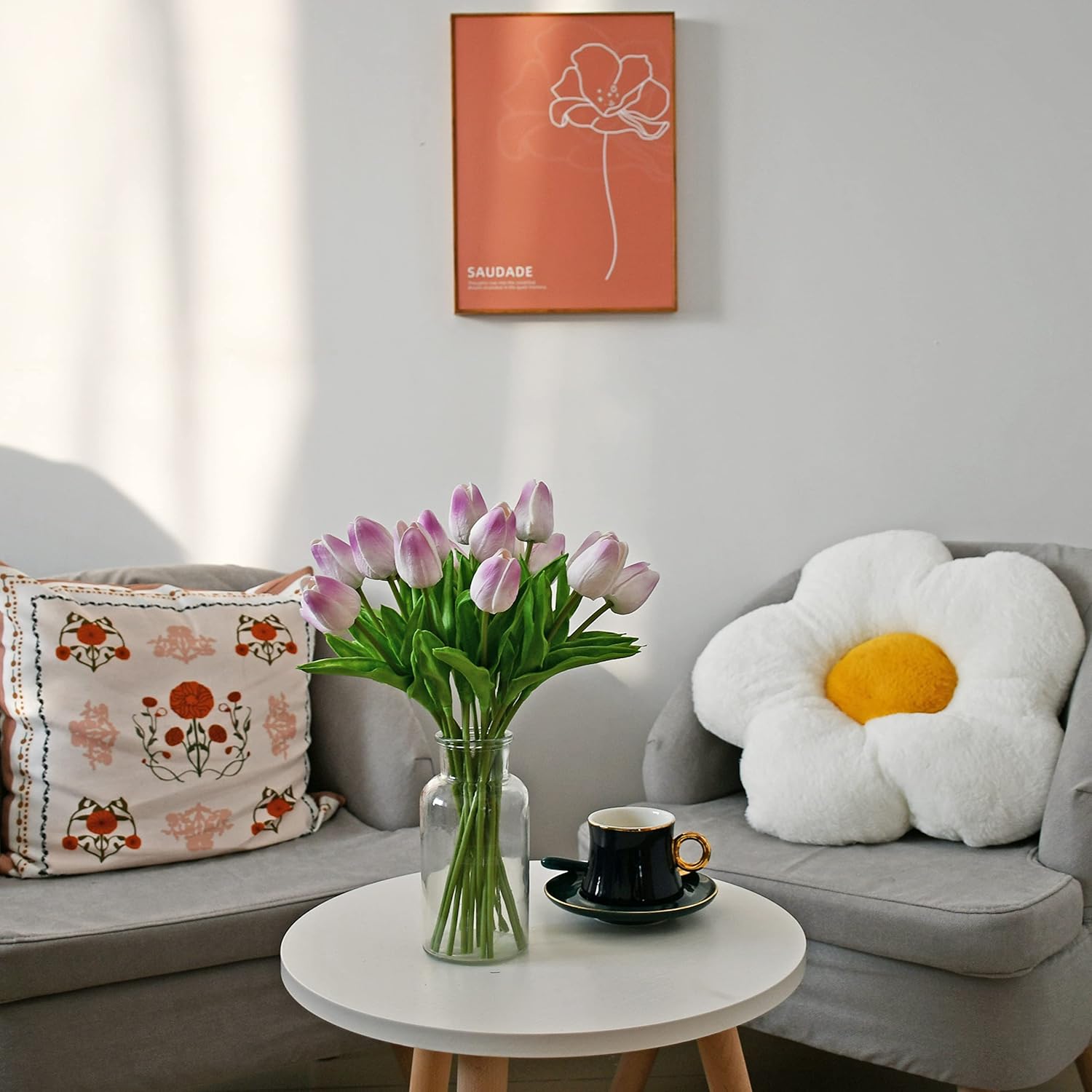 Mandy's Artificial Tulips 20 Stems Light Purple PU Faux Flowers for Wedding Home Decor 13.5 Inch