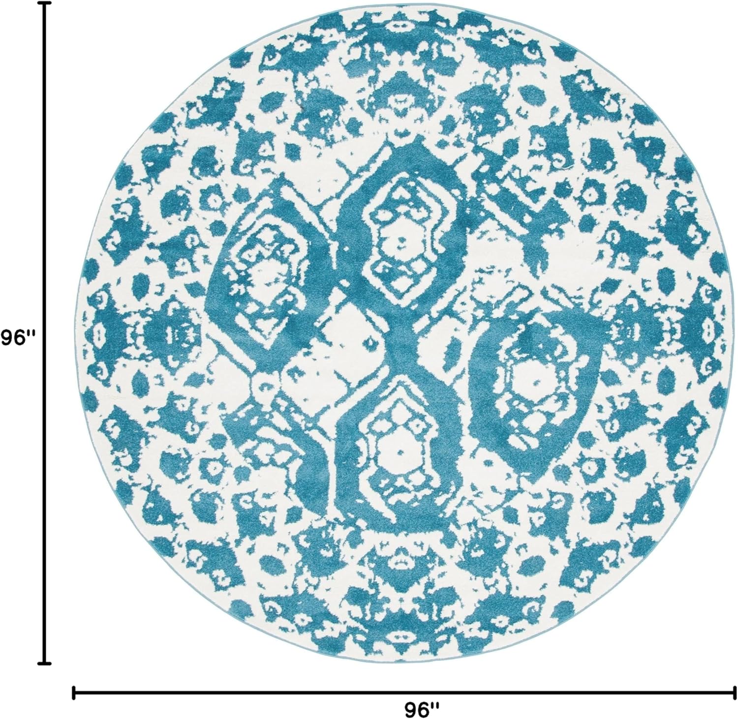 - Size in FT: 8' 0 x 8' 0 - Size in CM: 245x245 - Pile Height & Thickness: 1/2" - Colors: Blue, Ivory