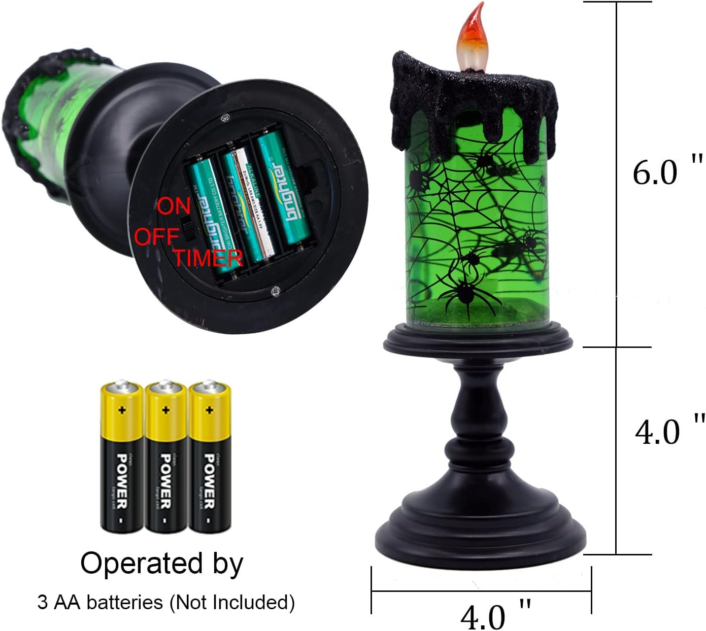 - Spinning Water and Glitter: Once you turn on the spider snow globe candle light, the candle top wick and inner light will light up, then the motor start to swirling the glitters and water keep spinning until you turn off them.