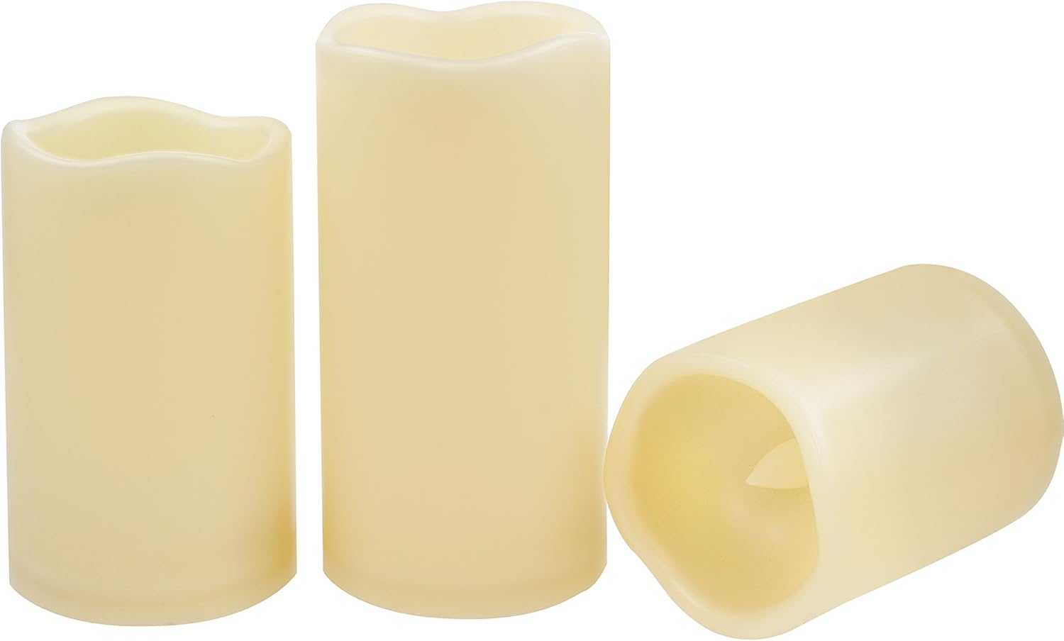 CANDLE CHOICE Waterproof Outdoor Battery Operated Flameless Candles with Timer Realistic Flickering Plastic Fake Electric LED Pillar Lights for Lantern Garden Wedding Christmas Decorations 3 Pack
