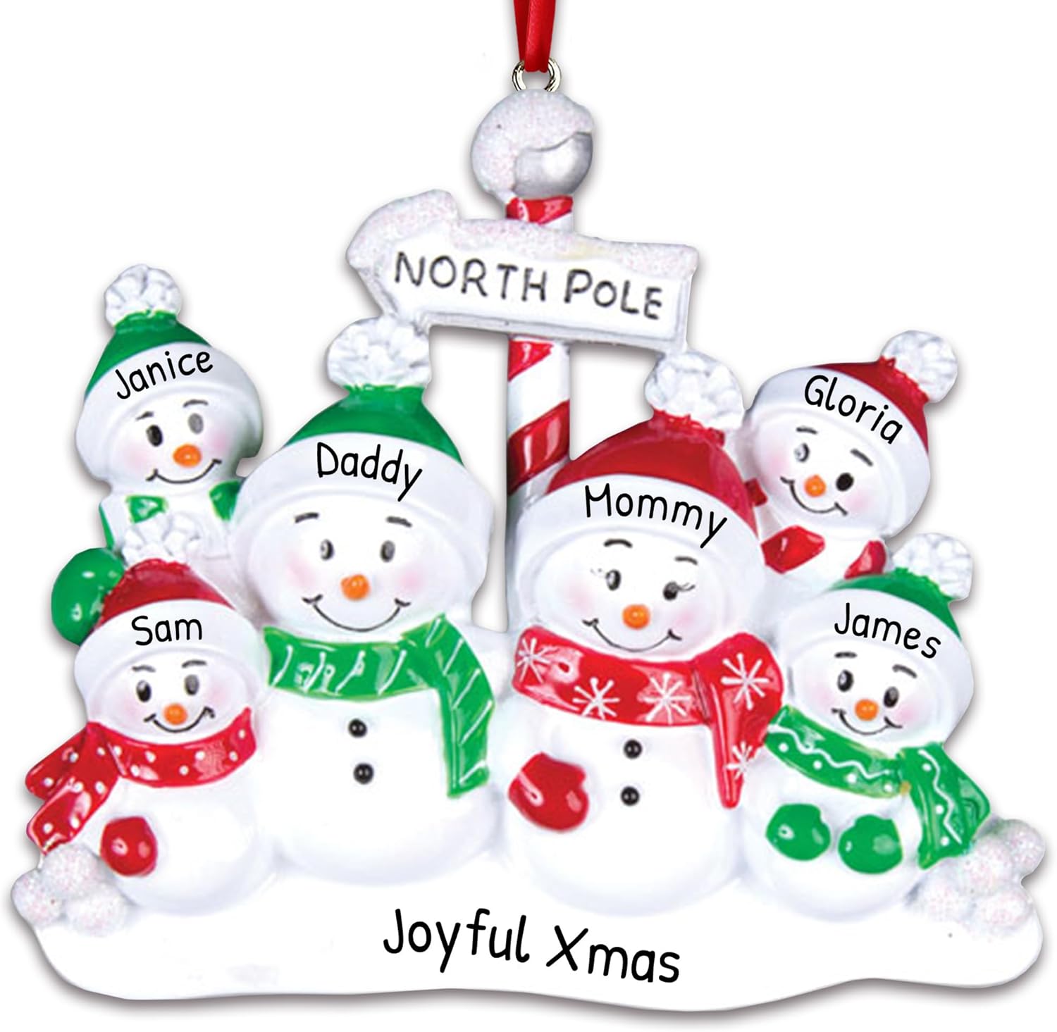 - ๐ Celebrate Your Family of 6: Mark a joyful milestone with a personalized family of 6 Christmas ornament 2025. Whether itโs your first year as six or part of a cherished tradition, this keepsake honors your growing bond and tells your story with warmth, love, and festive cheer. Celebrate winter magic with this cheerful Christmas decoration featuring a snowman family of six design all bundled in red and green winter accessories. They stand proudly beneath a North Pole sign ornament, bringing whimsical charm to your tree. With its snowy white holiday scene, this piece adds heartwarming joy to your seasonal dรฉcor.