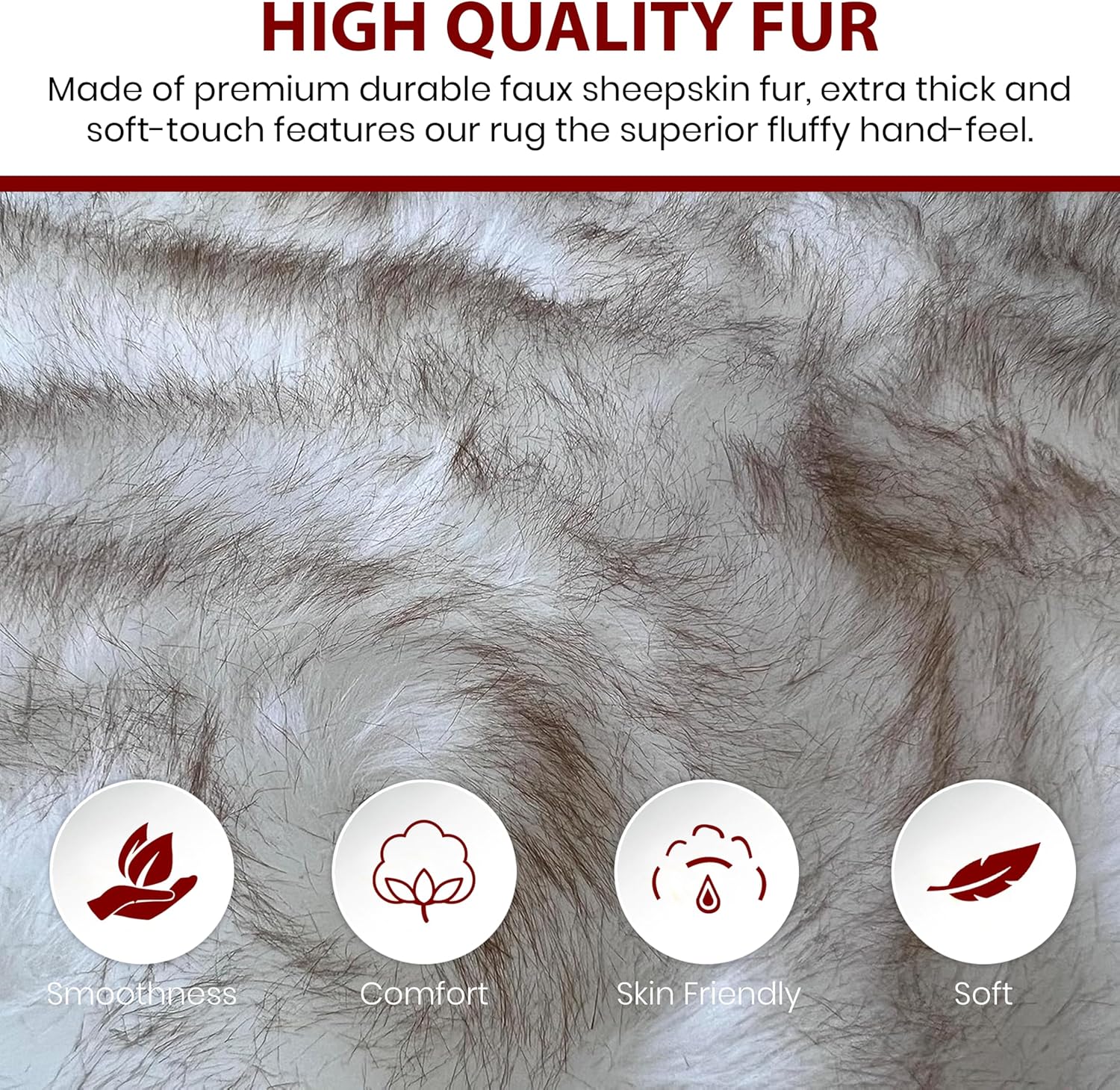 - ULTRA SOFT TOUCH FAUX FUR RUG: The soft materials of this shag rug is easy to clean, cozy on your feet as you walk, and make a perfect complement to your home with this rug. The collection features soft feeling sheepskin rug acrylic yarns furry rug that makes it easy to get cozy and delightful to touch. Faux sheepskin rug ensures its good durability and comfortable touch.