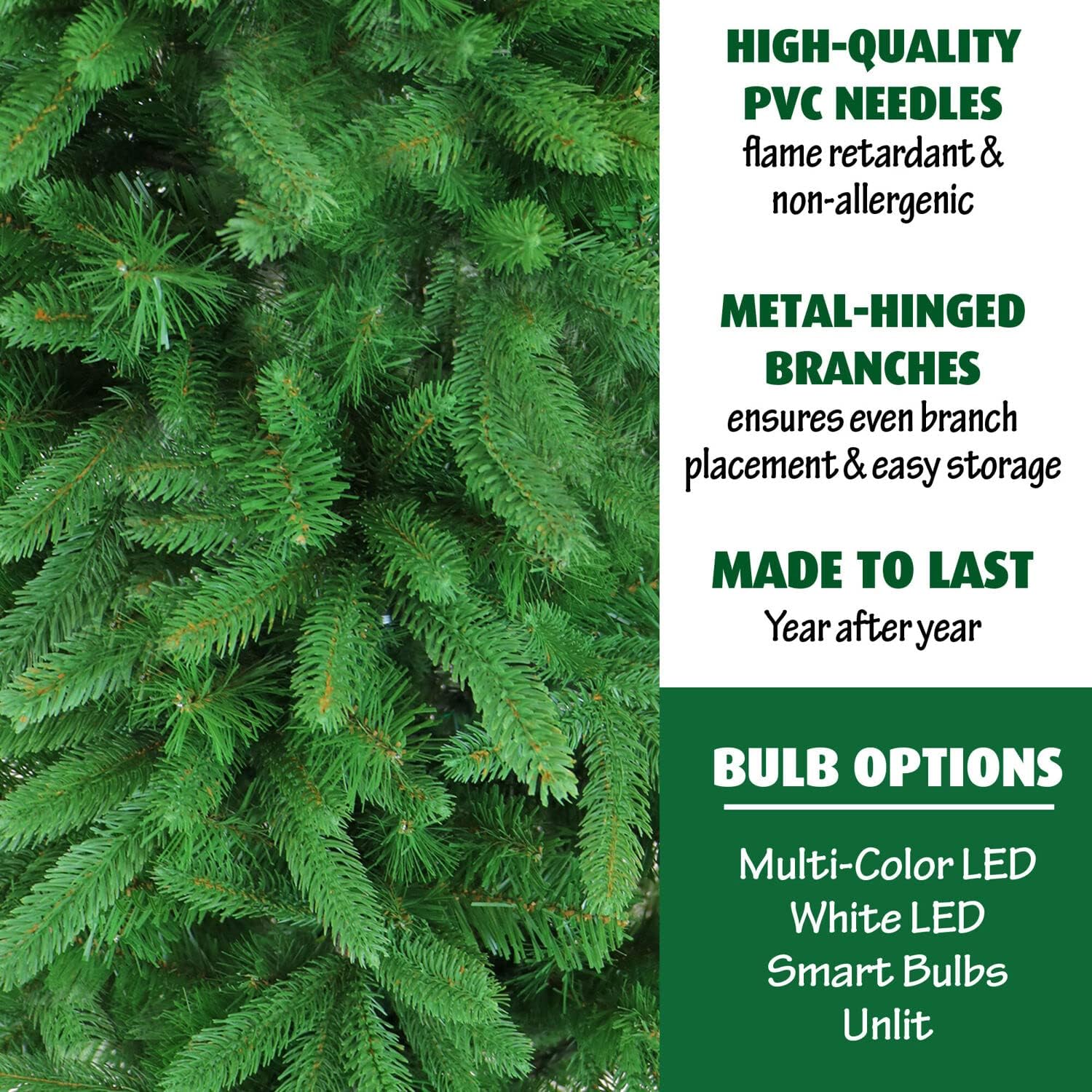- Not Your Average Artificial Tree: 1582 dense lifelike tips create the appearance of a natural cut tree; Crafted of premium materials that are flame-retardant and non-allergenic