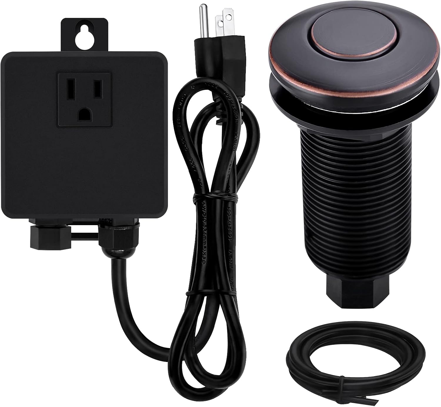Garbage Disposal SinkTop Air Switch Kit with Long Button,Brass Made Cover,Oil Rubbed Bronze