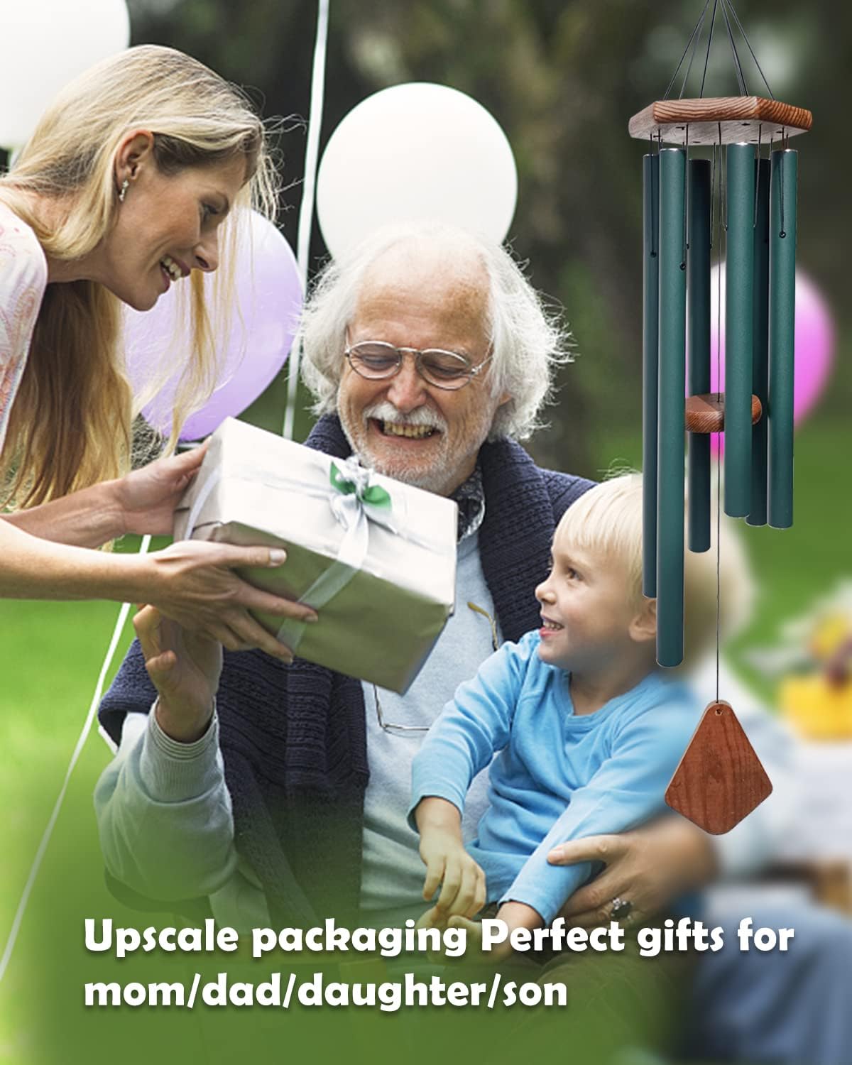 Wind Chimes Outdoor Large Deep Tone,Sympathy Wind Chime Outdoor, Memorial Wind-Chime with 6 Tuned Tubes, Elegant Chime for Garden, Patio, Balcony and Home Decor, Matte Green