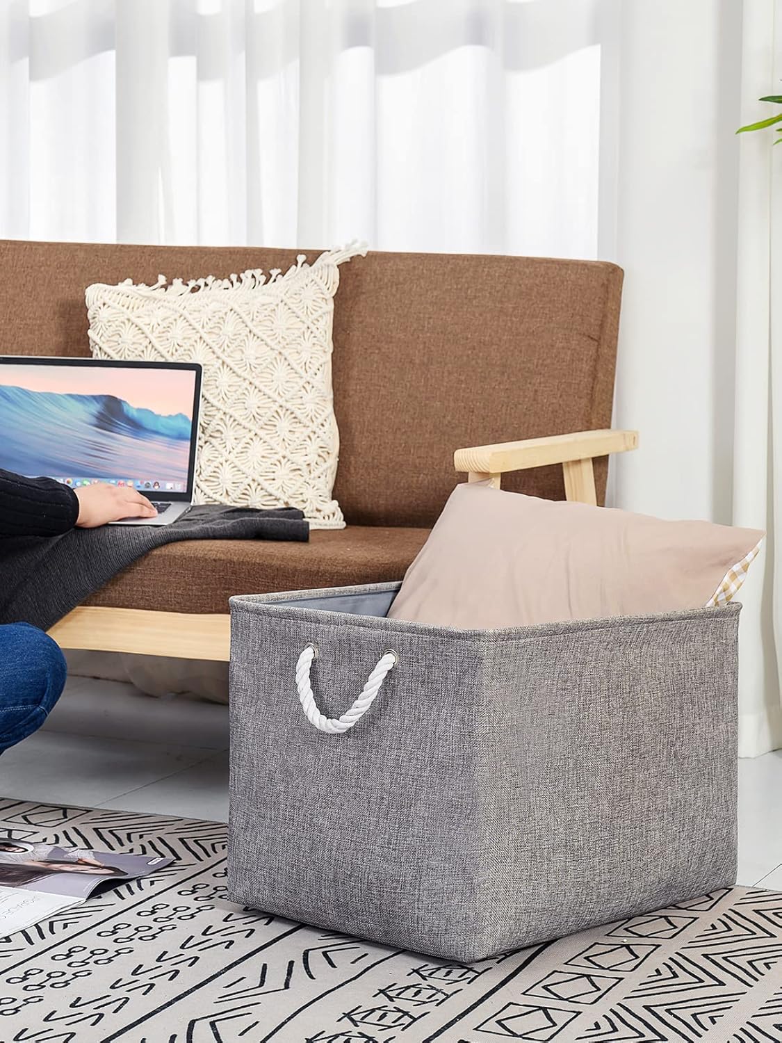 - DECORATIVE & ARTISTIC & GIFT BASKET - As a must have for home organization and storage, TheWarmHome organizer bins is the perfect gift basket. 1.TheWarmHome Bins had big storage capacity 2.Minimalist design and neutral grey color can be integrated into any home decorations and styles.3.Contrast other material, Fabric softer and Foldable, easy storage and clean, better use in home. 4.10 years + professional factory, Use better EVA fabric,TheWarmHome, WARM YOUR HOME