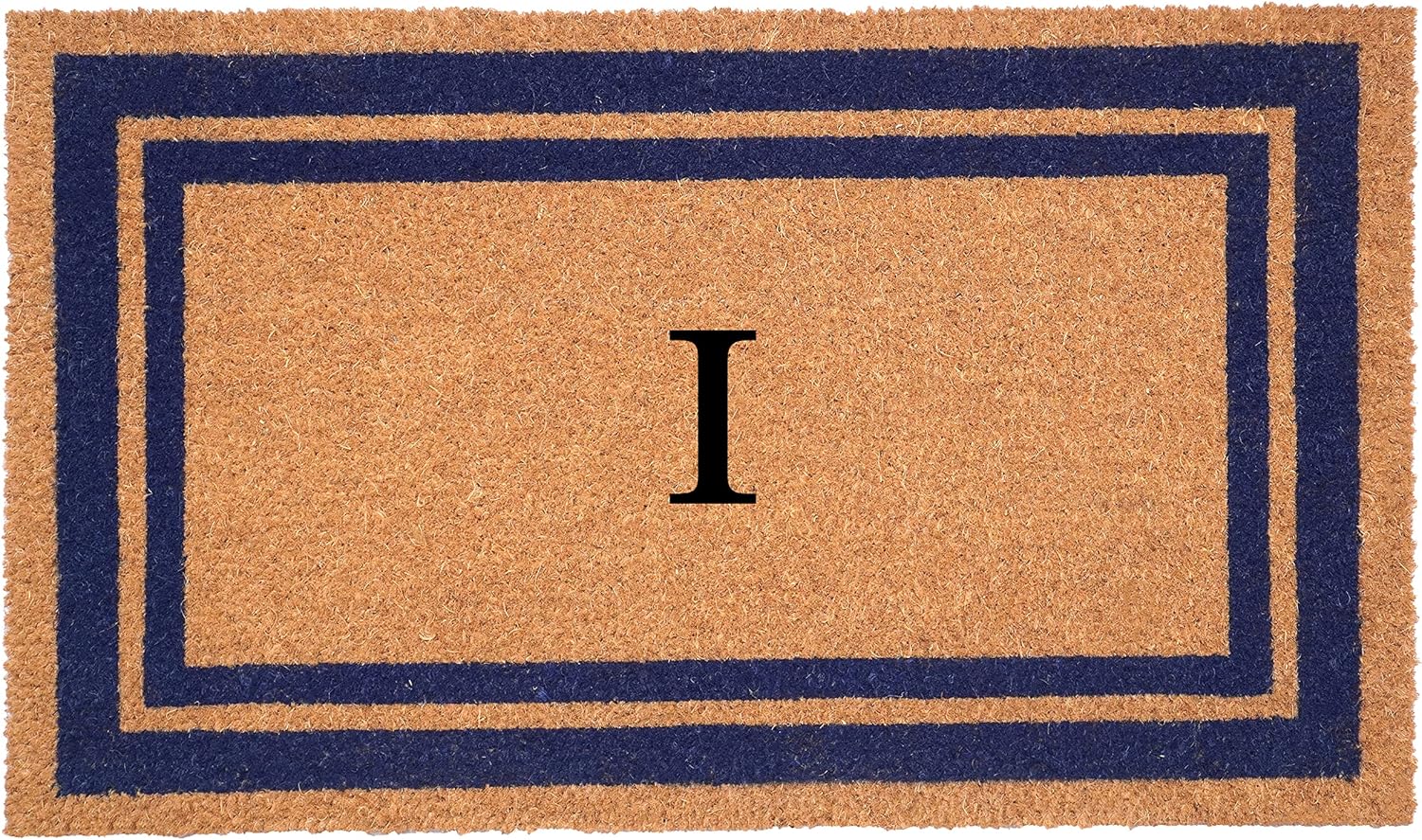 Calloway Mills 153001830I Dark Blue Border 18" x 30" Monogram Doormat (Letter I)