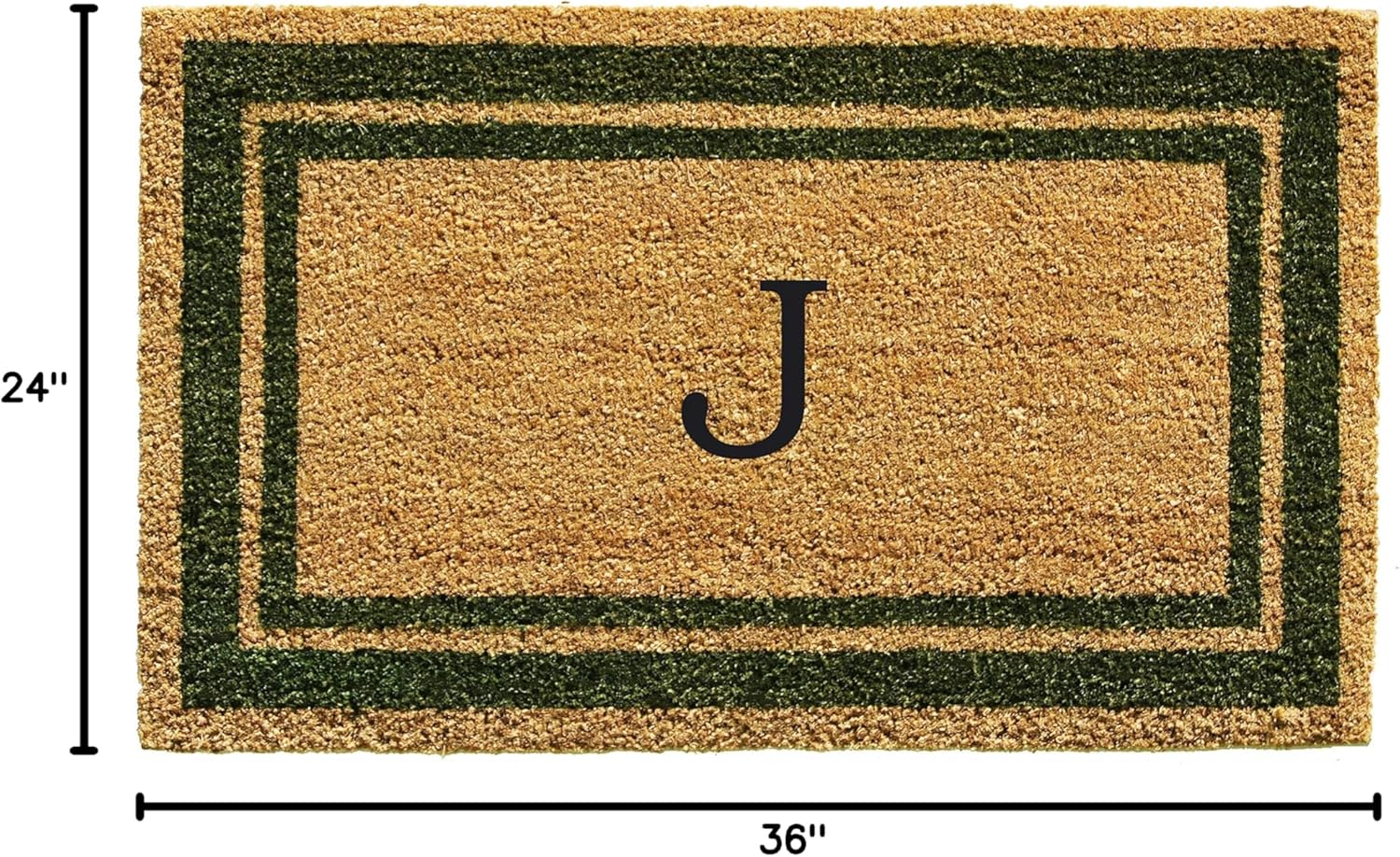 Calloway Mills 153042436J Sage Green Border 24" x 36" Monogram Doormat, (Letter J)