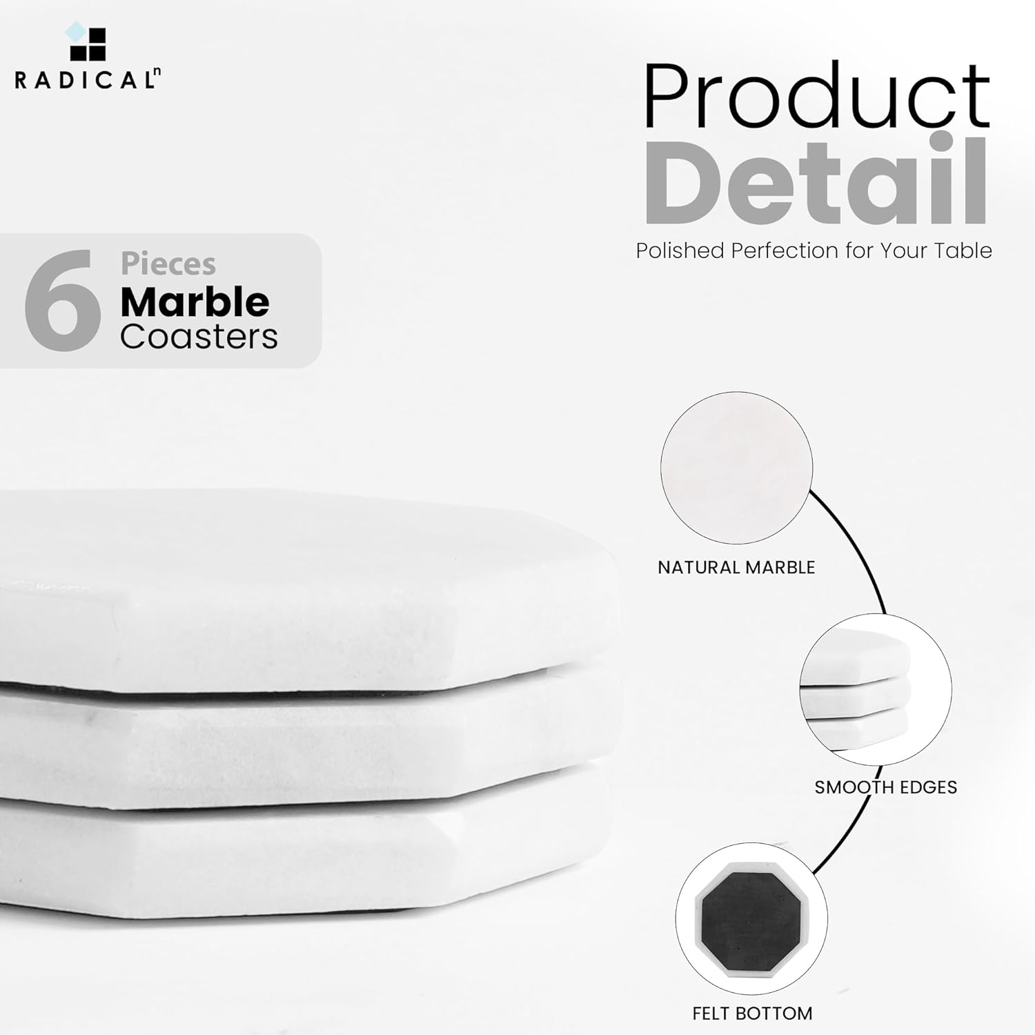 Radicaln Marble Coasters Star 3.5" Inches White Handmade Marble Drink Coasters for Home and Kitchen, Drink Coaster Set of 6, Ideal Coaster for Drink