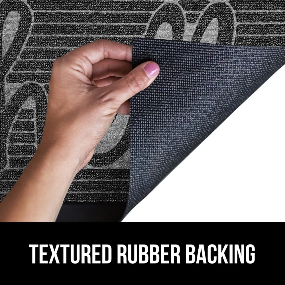 GORILLA GRIP 100% Waterproof All-Season WeatherMax Doormat 35x23, US Designed Natural Rubber, Stain and Fade Resistant, Low Profile Indoor Outdoor Door Mats, Easy Clean Patio Mat, Charcoal Hello