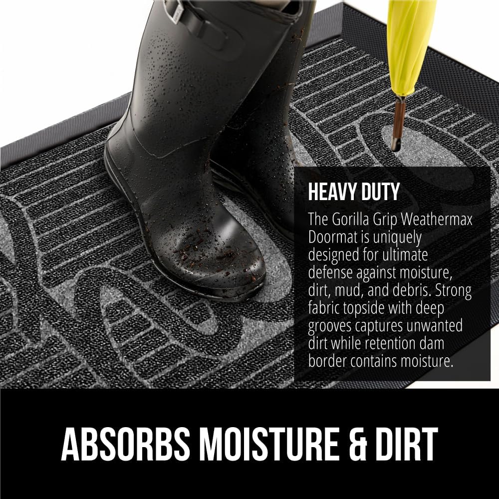 - THE ORIGINAL WEATHERMAX ALL SEASON DOORMAT: Gorilla Grip's Original WeatherMax doormat is built tough with a heavy duty, yet soft and flexible construction; deep grooves, beveled rubber border and retention dam help capture dirt, debris and moisture