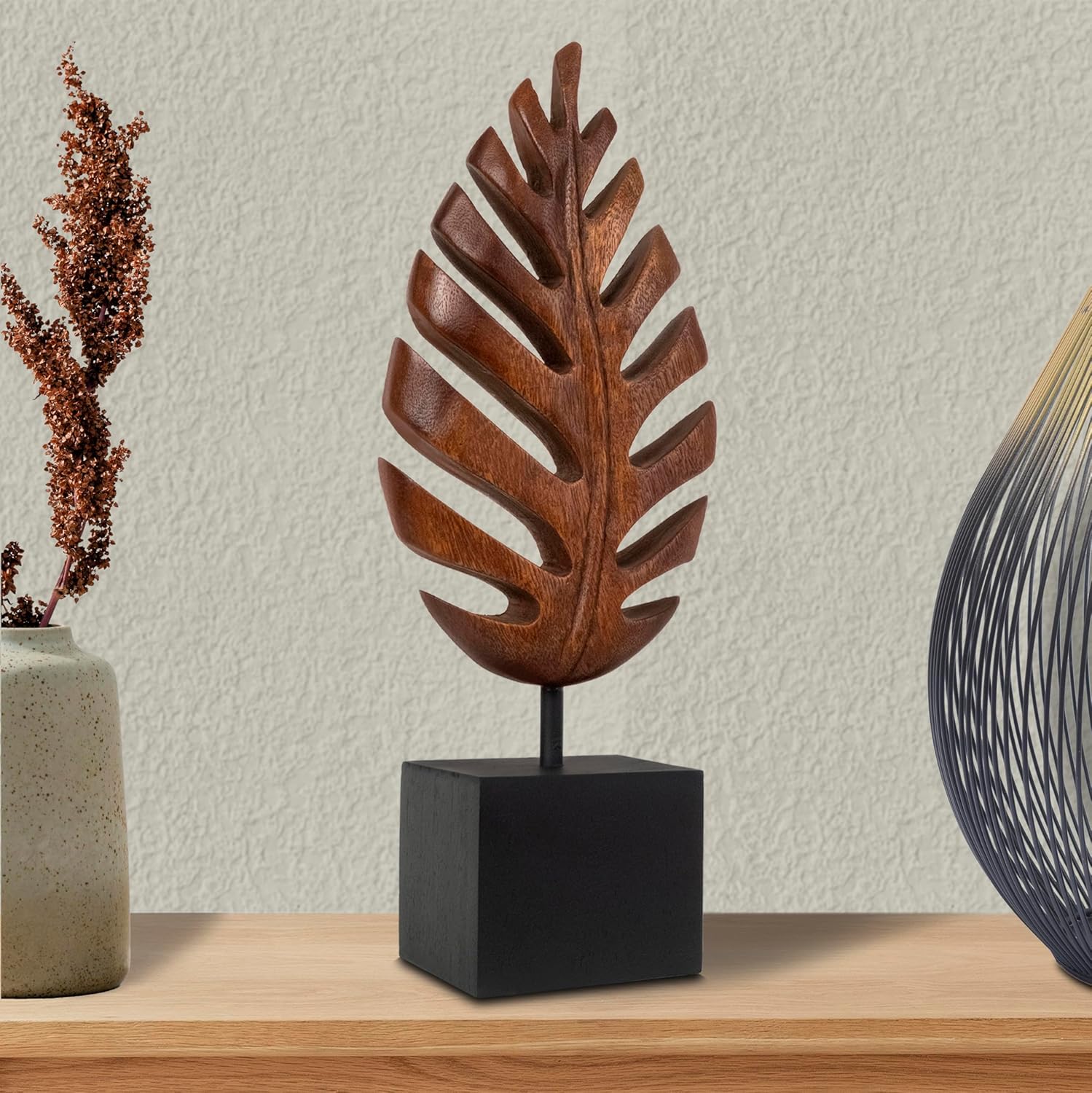 Decozen Wooden Leaf Sculpture - Hand‑Carved Solid Wood Coffee Table Decor and Western Decor Accent for Living Room, Mantel, Bookshelf Centerpiece