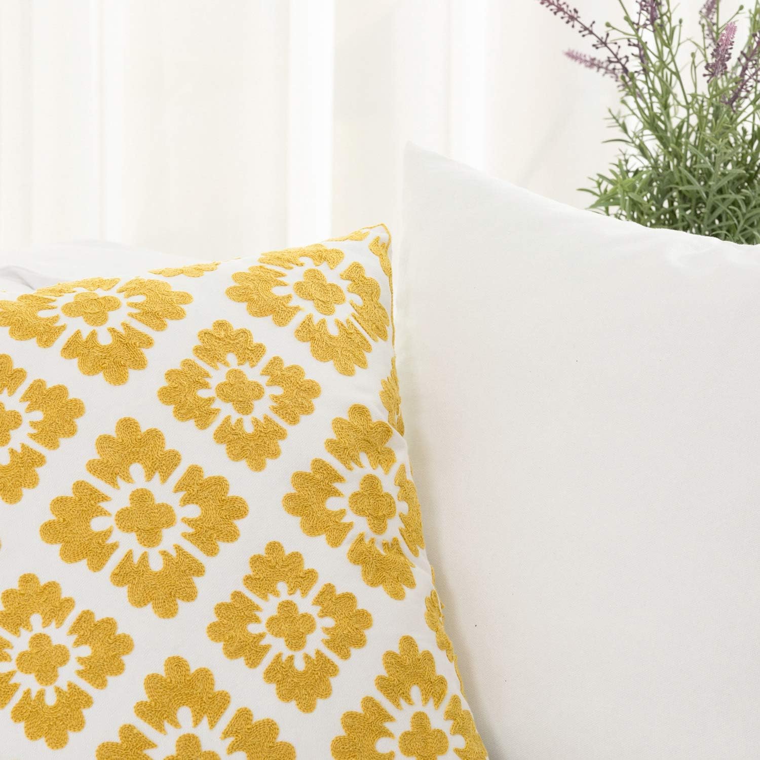 HWY 50 Mustard Yellow Decorative Throw Pillow Covers 18x18 Inch (1 Piece), Embroidered Cotton Farmhouse Cushion Cover Pillow Case for Sofa Couch Living Room Bed, Little Sunflower
