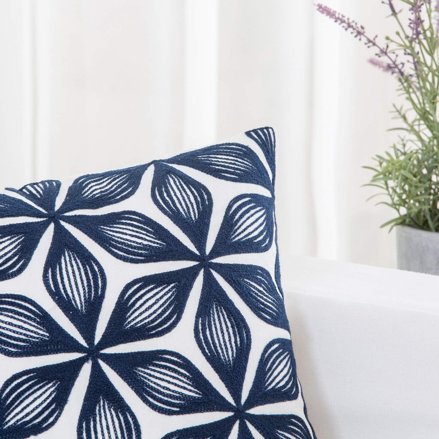 - Size & Material: This 18 x 18 inch (18 by 18) square throw pillow cover is made of 100% thick cotton canvas for durability. The crisp white fabric is soft yet sturdy, featuring beautiful single-sided embroidery for an elegant touch