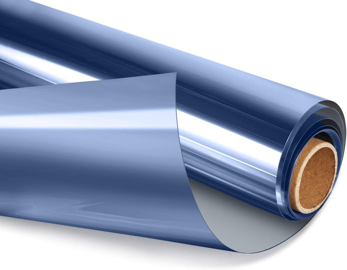 HIDBEA One Way Mirror Window Film Daytime Privacy, Heat Control Anti UV Reflective Window Tint for Home, Non-Adhesive Self Static Cling Window Stickers(Blue-Silver, 17.5 Inch x 6.5 Feet)