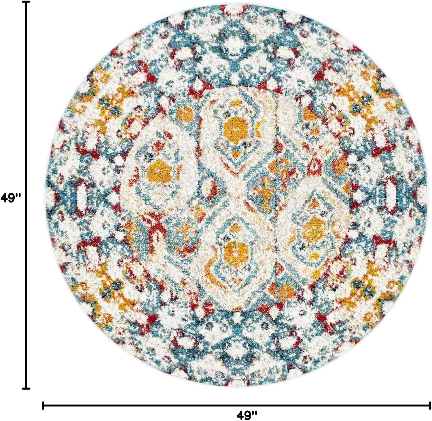 Unique Loom Rosso Collection Vintage, Geometric, Bohemian, Traditional, Distressed, Southwestern Area Rug, Round 4' 0" x 4' 0", Multi/Ivory