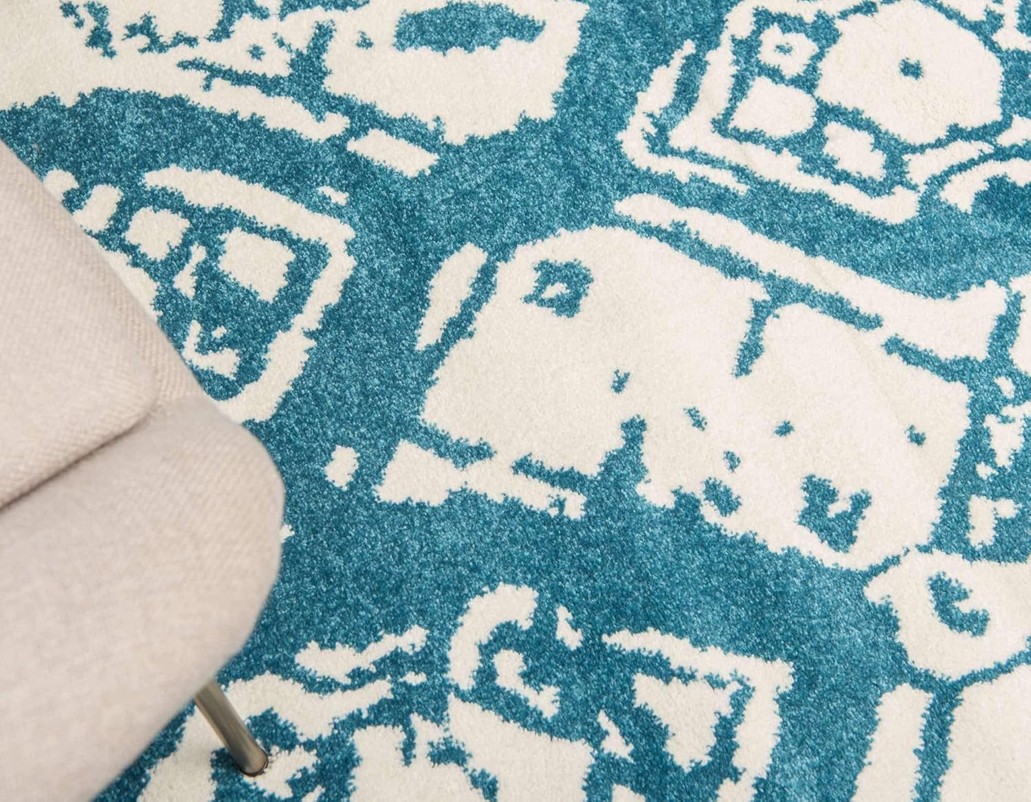- Size in FT: 3' 3 x 3' 3 - Size in CM: 100x100 - Pile Height & Thickness: 1/2" - Colors: Blue, Ivory