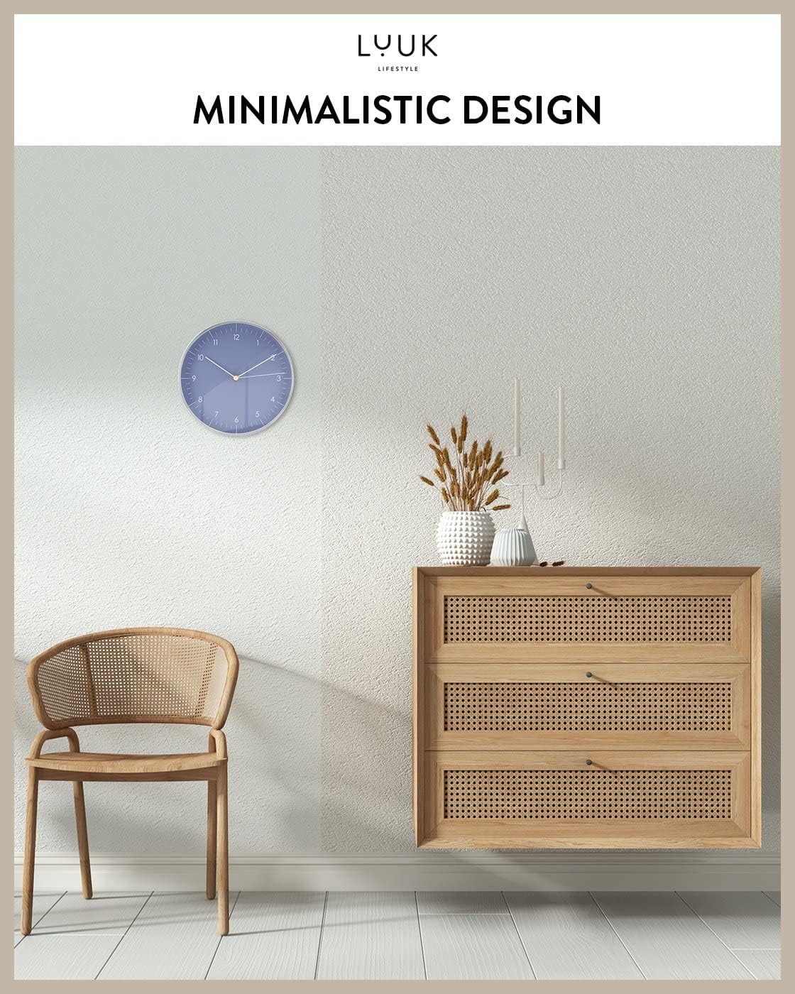 - A STYLE THAT FITS IN WITH ALL INTERIOR STYLES: Our wall clock is suitable for all types of interiors and layouts (as a living room clock, kitchen, hallway, office, bathroom, children's room, etc.) and blends in perfectly with your furniture