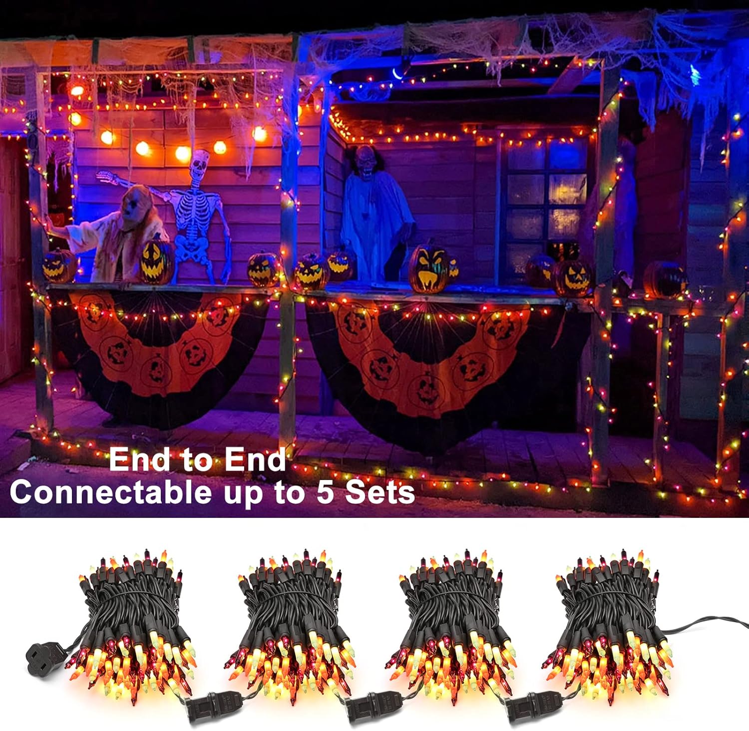- Connectable Mini Halloween Lights: Connect end to end up to 5 sets(500 lights), allow you to decorate your home both inside and outside with your desired length; UL Certified great value and quality. Replaceable fuse plug. Extra regular bulbs and fuse included.