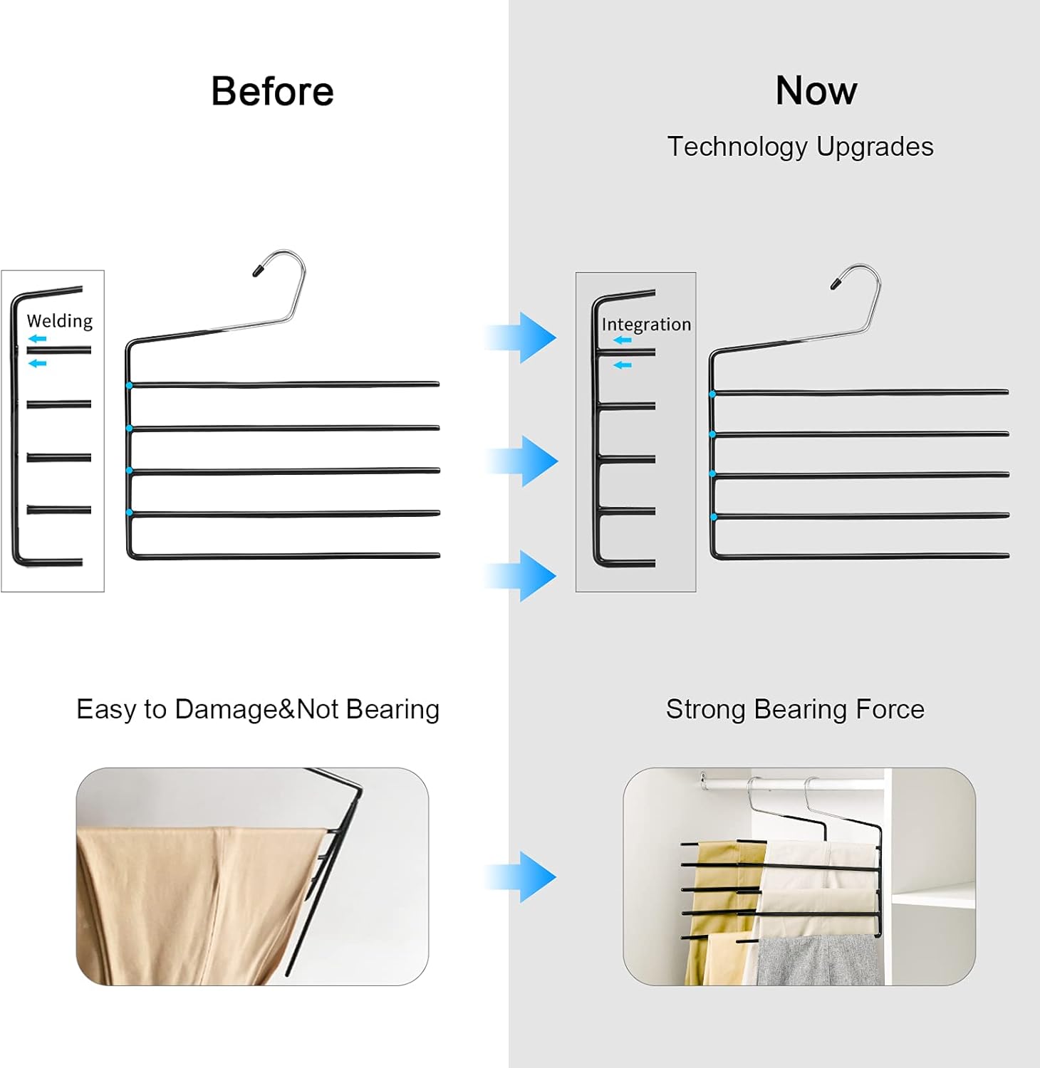 - Durable heavy metal construction, We upgrade our design without any soldering on the major structure. No breakking even you hang 5 pairs heavy pants on.Slip-resistant vinyl coating protect the pants from slipping off.