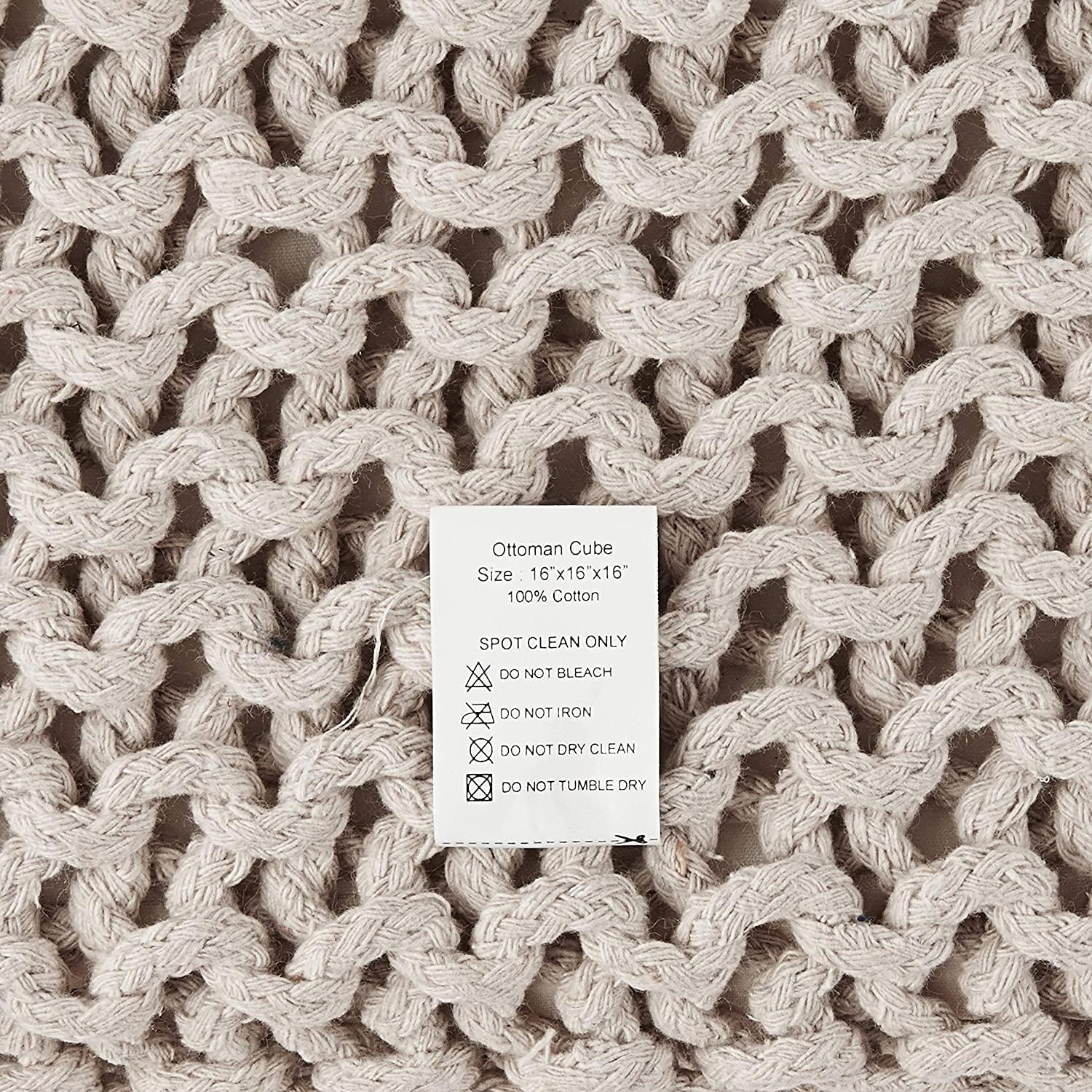 - WHERE STYLE EFFORTLESSLY BLENDS WITH FUNCTION: Our handcrafted cube knitted pouf/ottoman foot rest is a beautiful accent piece for your home or business. It complements any kind of interior décor and is perfect for creating extra seating or for using as a footrest . Put one on display in the living room, bedroom, playroom, kid’s room, nursery, or any other room in and around your home. Give a Comfortable feeling to hardwood floors with our Hand Knitted Cotton Pouffe Ottoman.