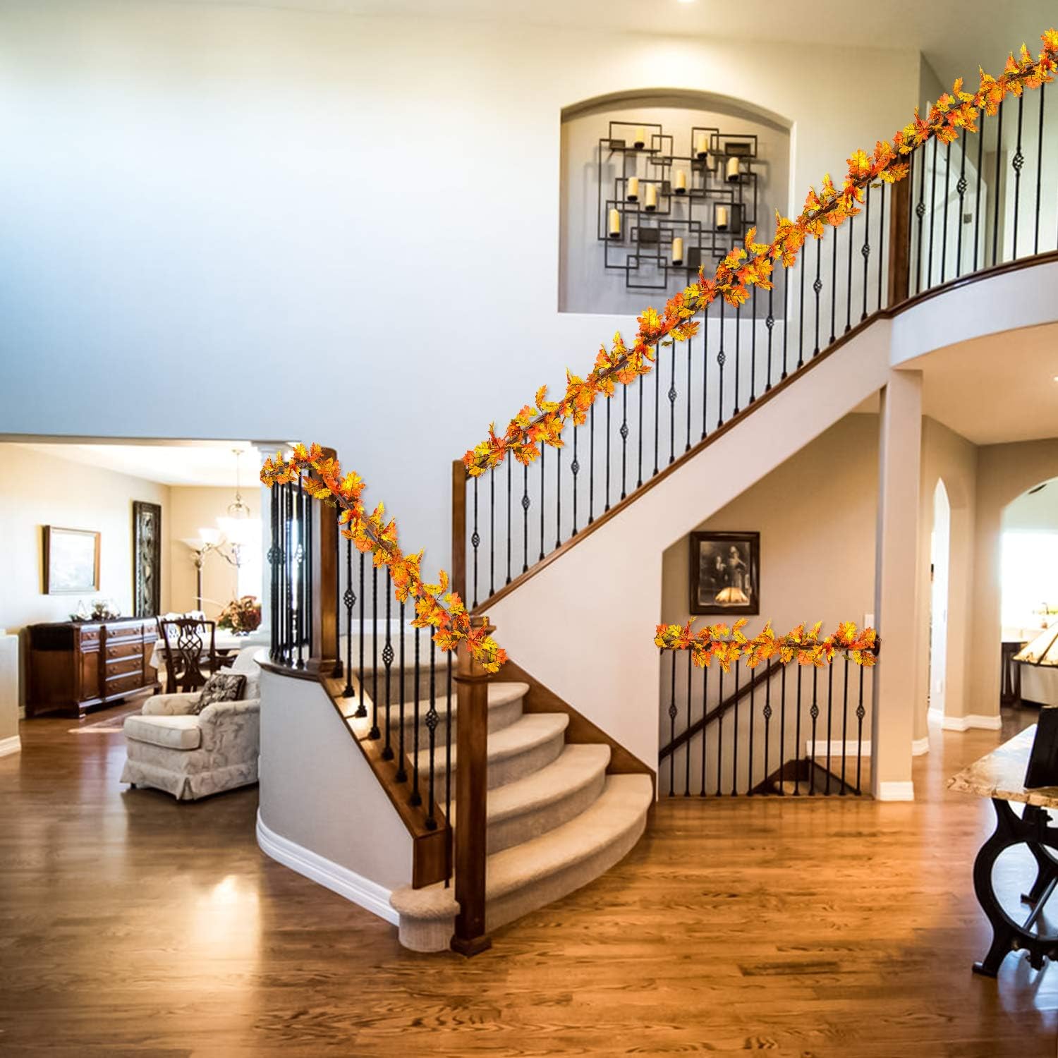 - 【Proper Length】-- 2 strand of 5.9 feet artificial maple leaf garlands, total length: 11.8 feet.