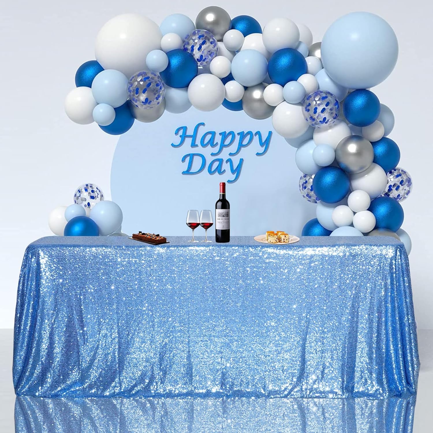 SquarePie Sequin Tablecloth 90 x 156 Inch Baby Blue Sparkly Table Linen for Wedding Party