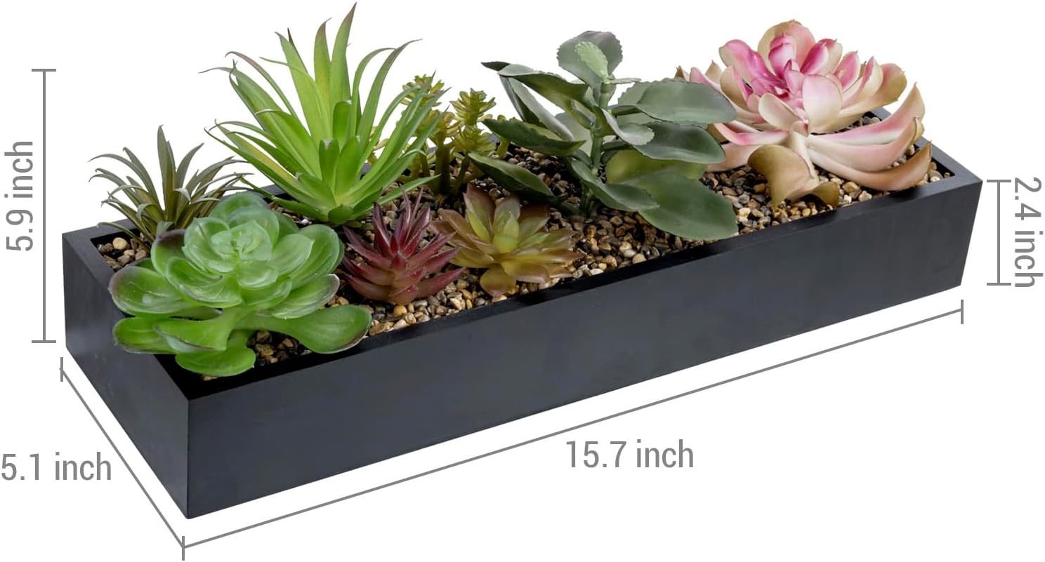 MyGift Artificial Assorted Succulent Arrangement in Rectangular Black Wood Planter Box, Fake Plant Decor