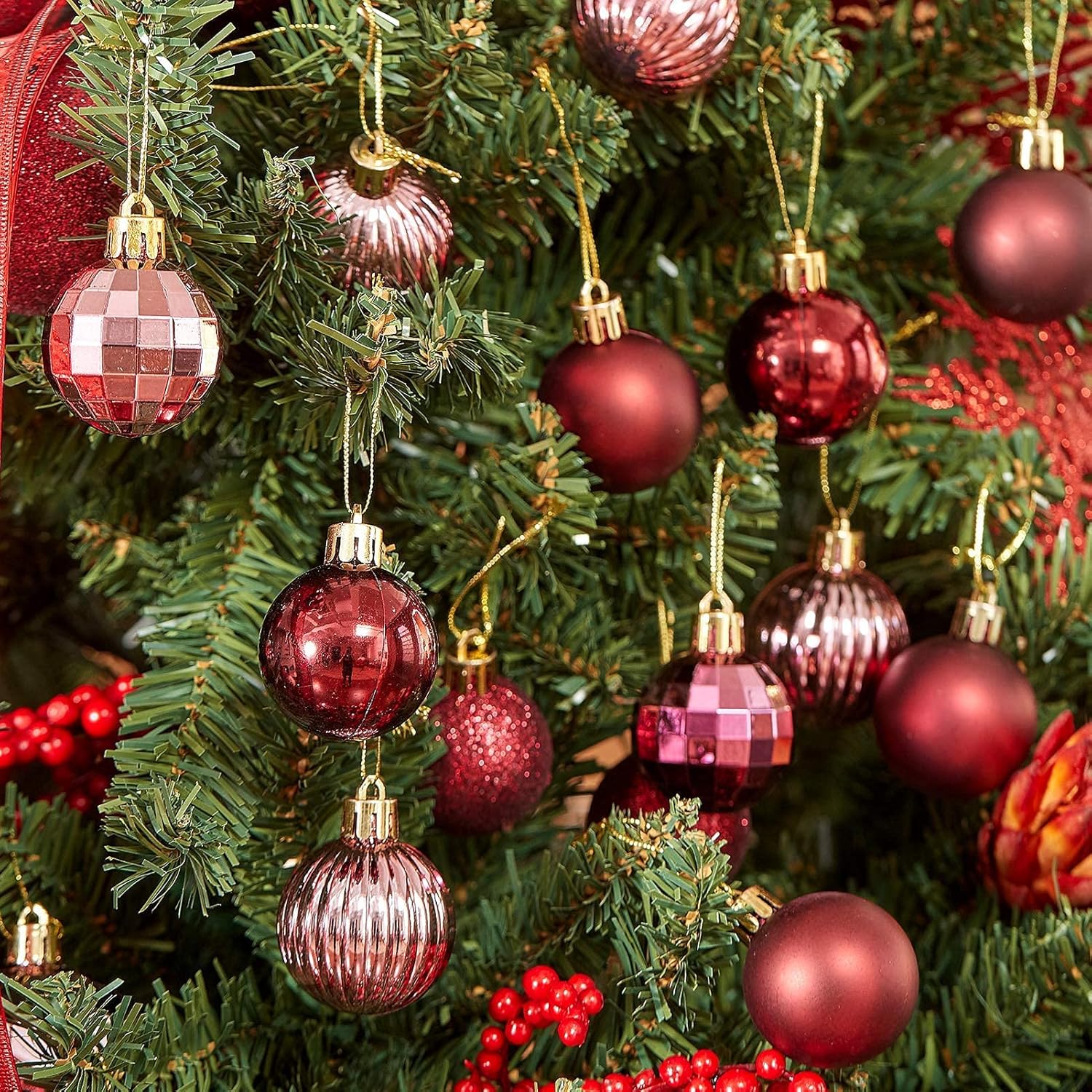 XmasExp 24ct Christmas Ball Ornaments Shatterproof Christmas Ornaments Set Decorations for Xmas Tree Balls(1.57''/40mm, Burgundy)