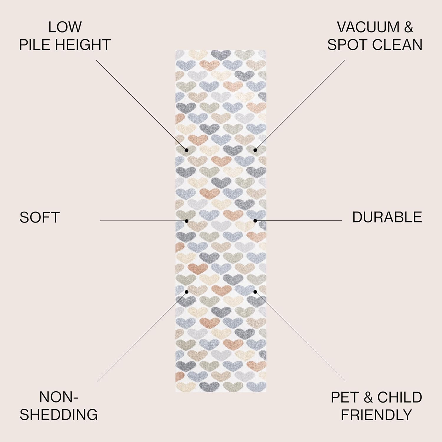 JONATHAN Y Machine-Washable Ivory/Blue/Orange Runner Rug, 2x8, Dila Modern Hearts Geometric, Kids & Novelty, Vintage, Bedroom, Kitchen, Living Room, Easy-Cleaning, Non-Shedding (KDW101A-28)