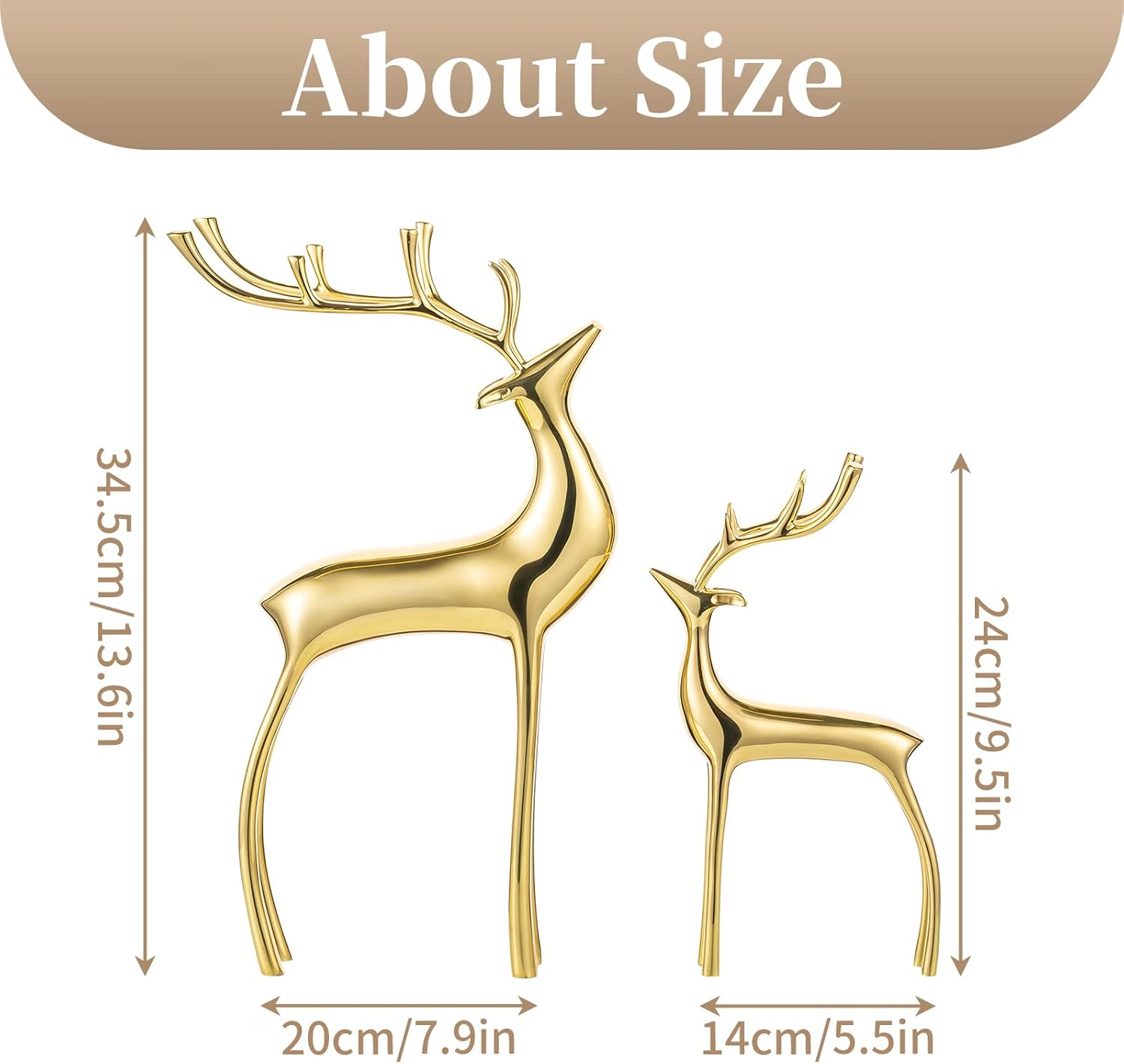 Sziqiqi Reindeer Figurine Statues Deluxe Set of 2, Christmas Deer Pure Copper Heavy Reindeer Ornaments for Home Decor Accents Living Room Office Bookself Tabletop Mantle Christmas Decoration, Gold