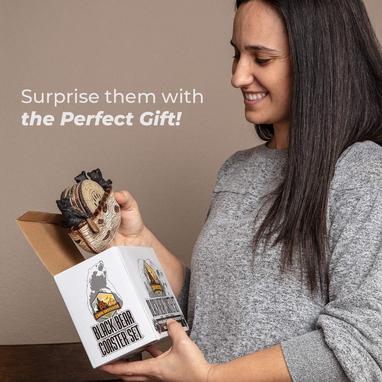 - ๐ป Makes the Perfect Gift โ Our adorable bear coaster set makes the perfect housewarming gift for cabin decorations, rustic home decor, farmhouse decor, or simply as a unique coffee table feature for a man cave. Not to mention, the adorable canoeing bear characters make a great conversation piece!