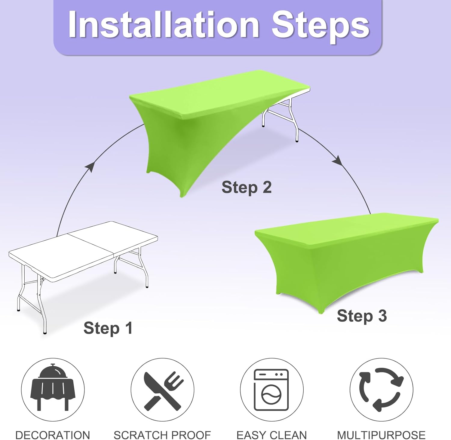 ABCCANOPY 6 FT Spandex Table Cover Stretch Fitted Wrinkle Resistant Tablecloth Reuse for Rectangular Folding Table Patry Event Wedding Banquet Protector Apple Green
