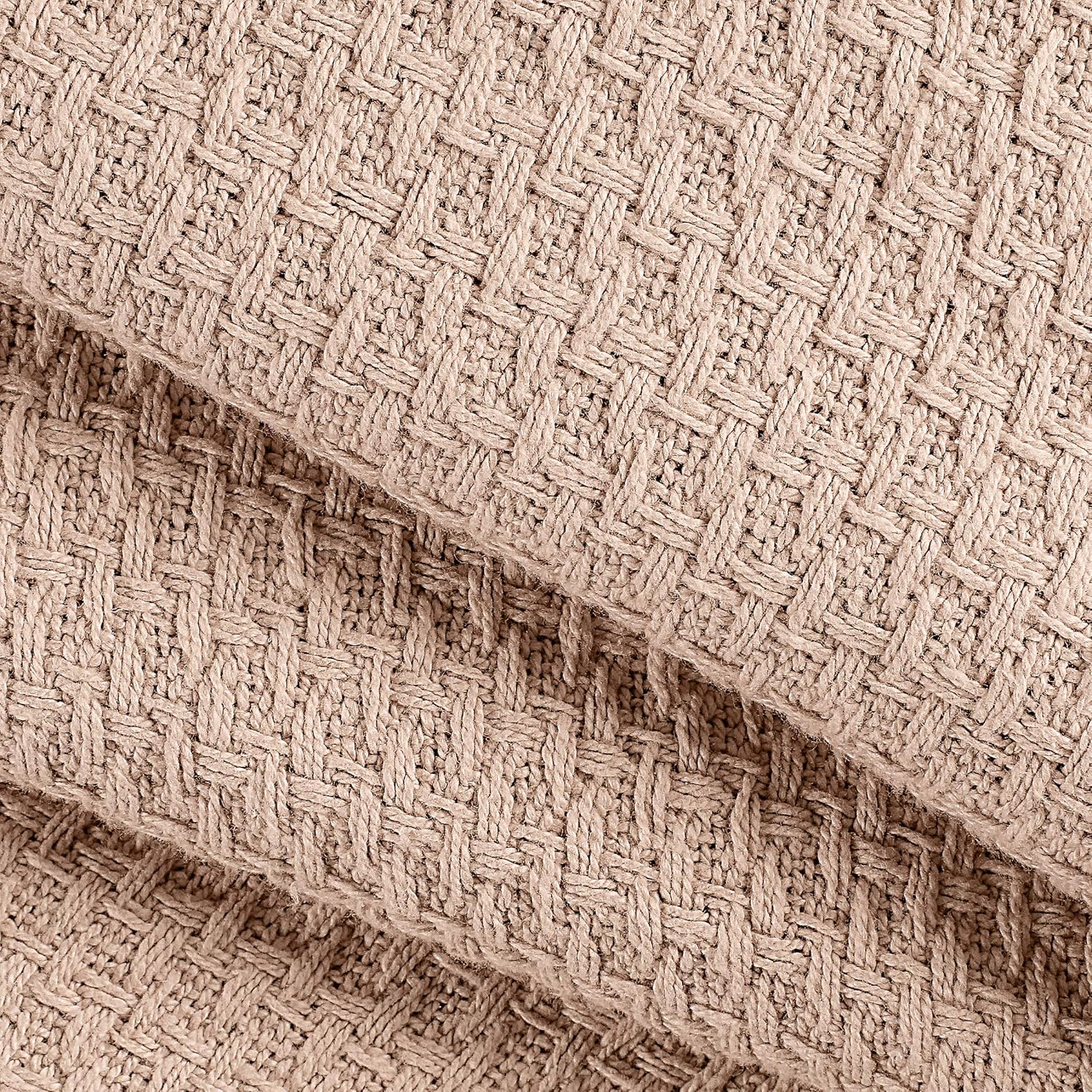 Elvana Home 100% Cotton Bed Blanket, Breathable Bed Blanket King Size, Cotton Thermal Blankets King, Perfect for Layering Any Bed for All Season, Beige