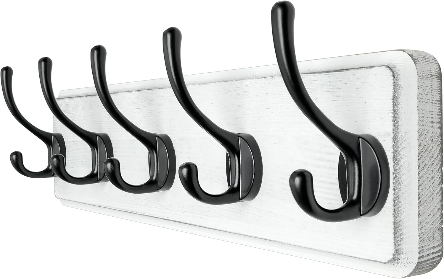 - Ultra-practical wall coat hanger with 5 dual hooks for perfect hanging coats, clothes, towels, jackets, hats, bags, etc. in entryways, bathrooms, mudrooms, and closets.