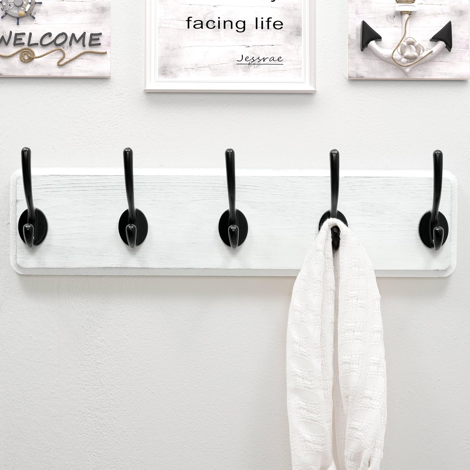 Dseap Coat Rack Wall: Patented, Heavy-duty, 17.4" Long 5-double-hooks Wooden Wall Mounted Coat Rack Coat Hanger Hook Rail for Winter Coats Hat Jacket Clothing, White & Black