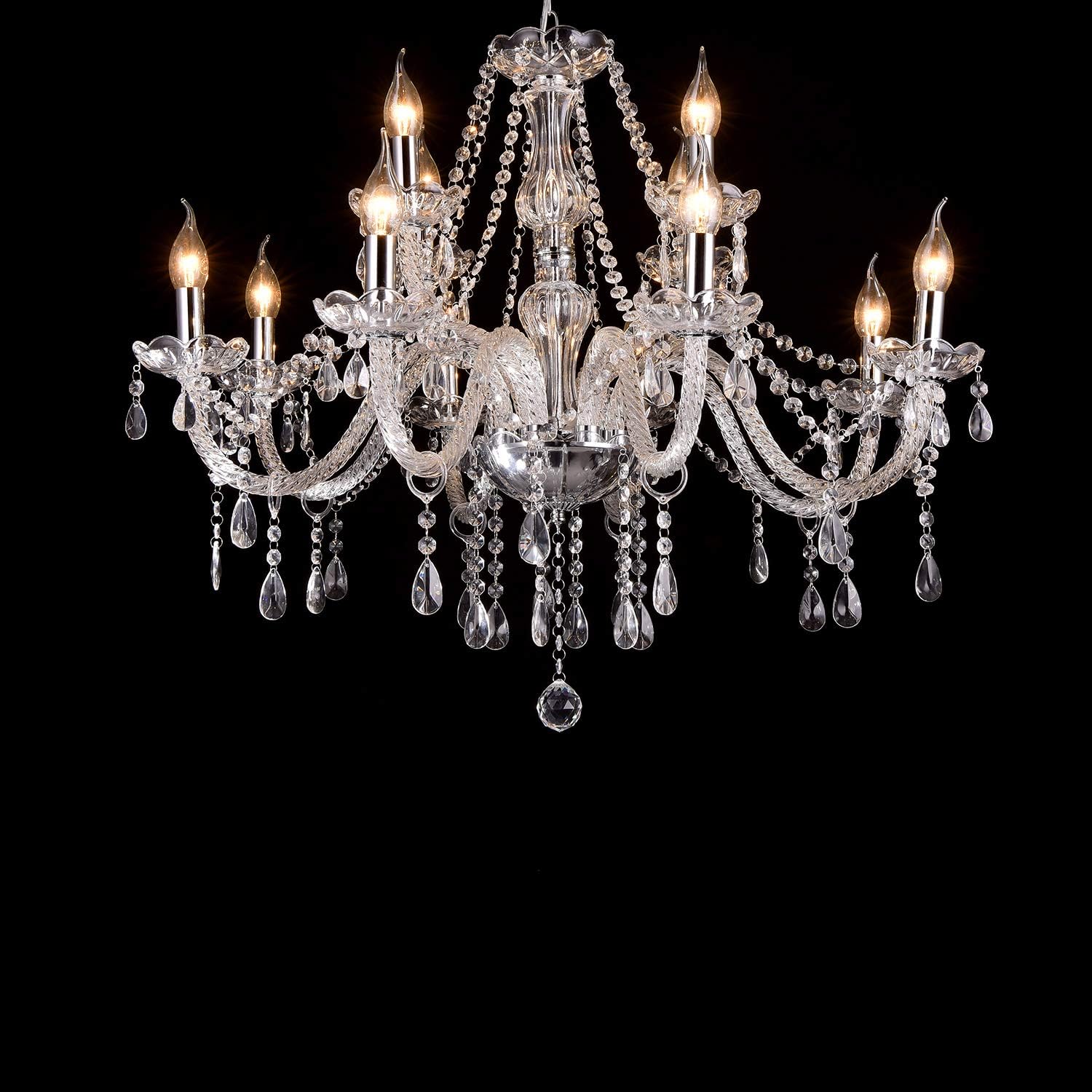 LIUMANG Modern Elegant 12 Lights K9 Crystal Glass Chandelier Pendant Ceiling Lighting European Style for Dining Living Room Bedroom Transparent,12 E12 Bulbs Required
