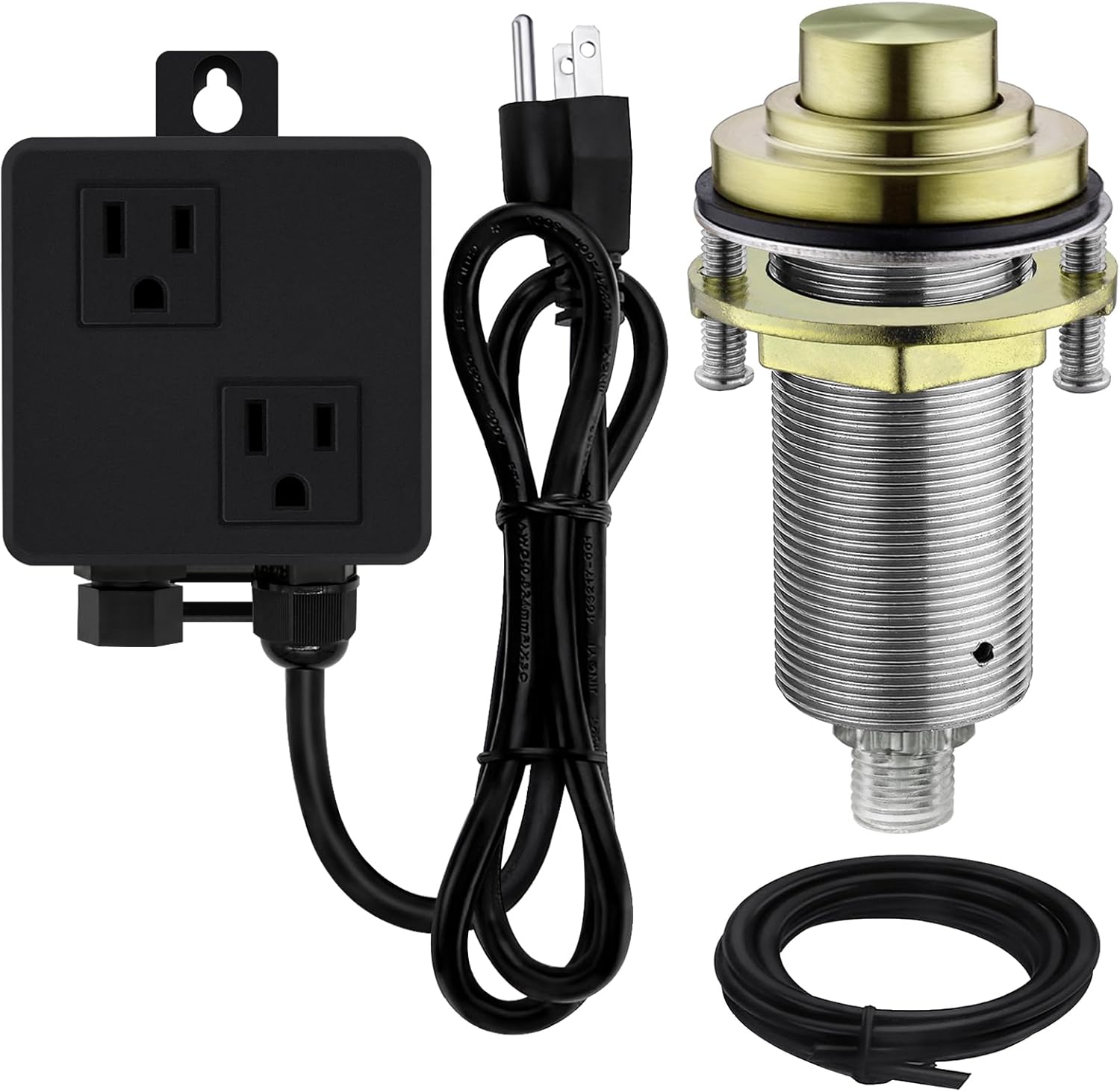 SinkTop Air Switch Kit with Brass Gold Long Button (Full Brass) for Garbage Disposal
